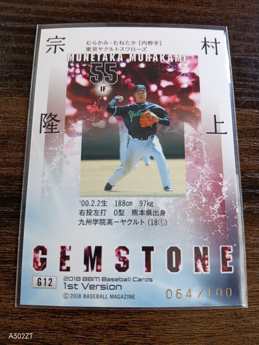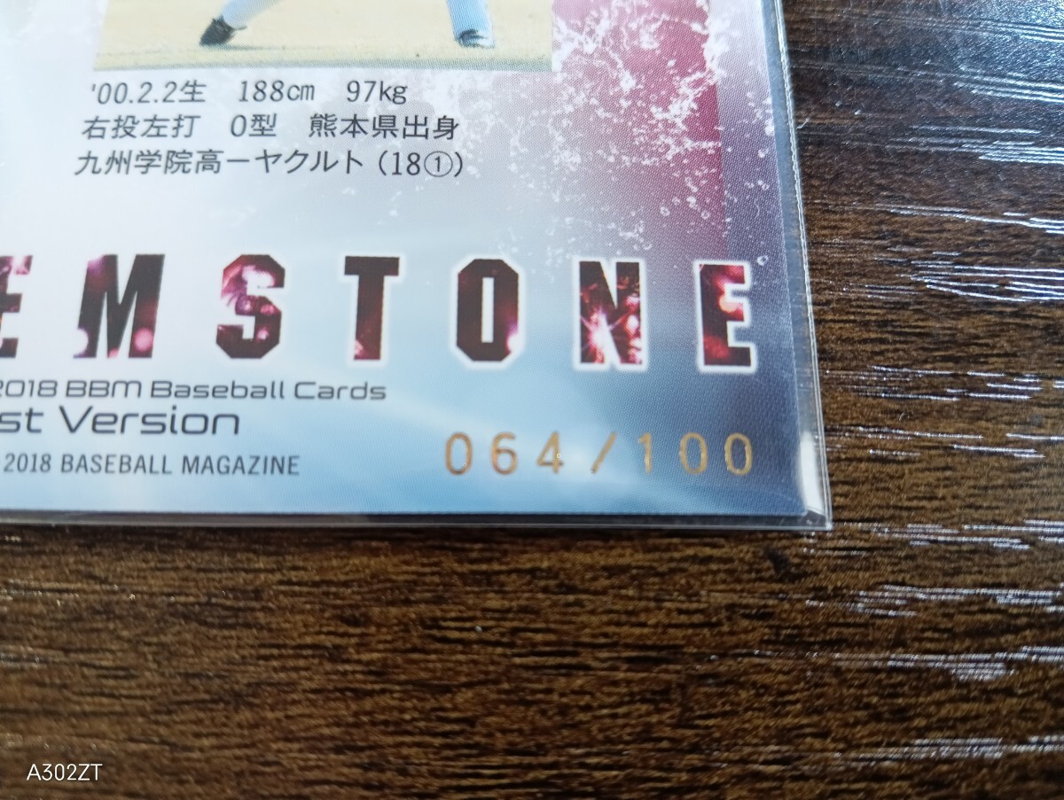 【100枚限定パラレル】2018 BBM 1st 村上宗隆 MUNETAKA MURAKAMI(ヤクルト)GEMSTONE インサートカード RC Rookie ルーキー シリアル入りです。大切に保管しておりました。送料は、普通郵便で110円です。