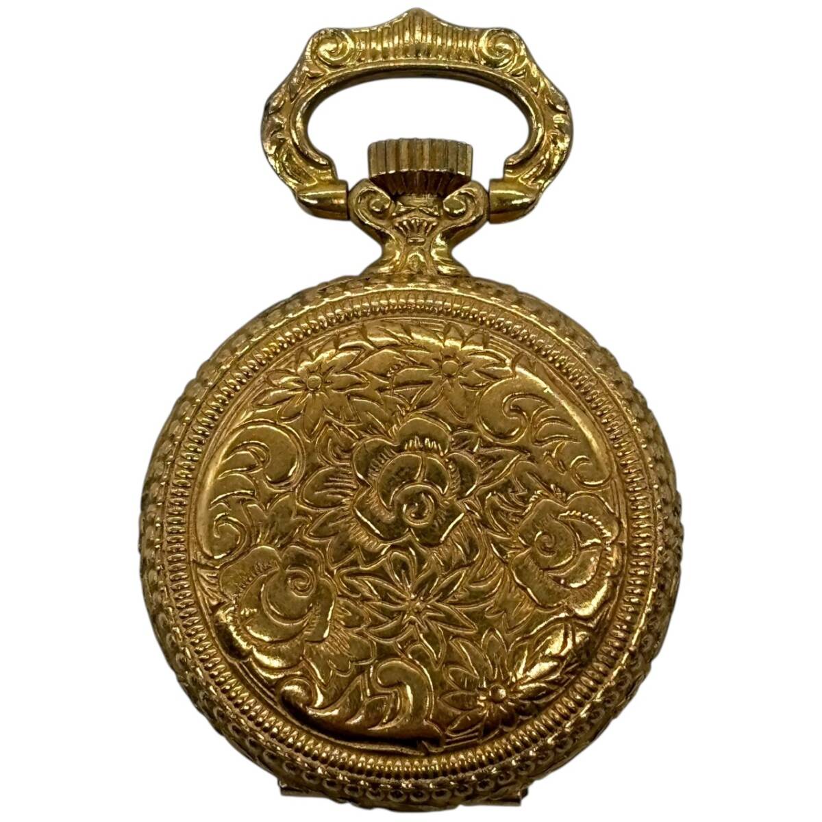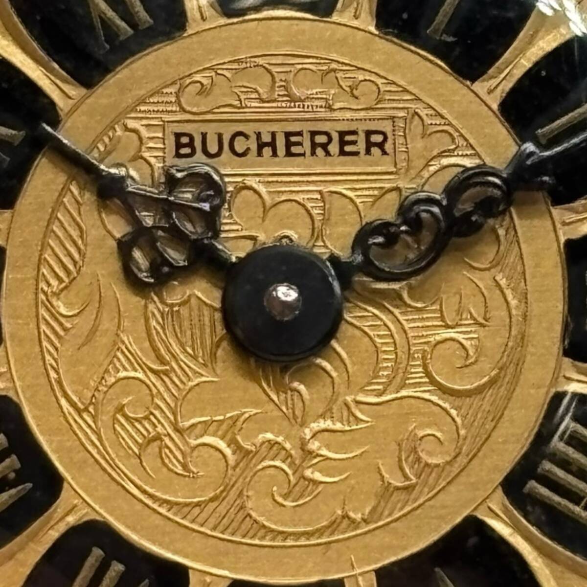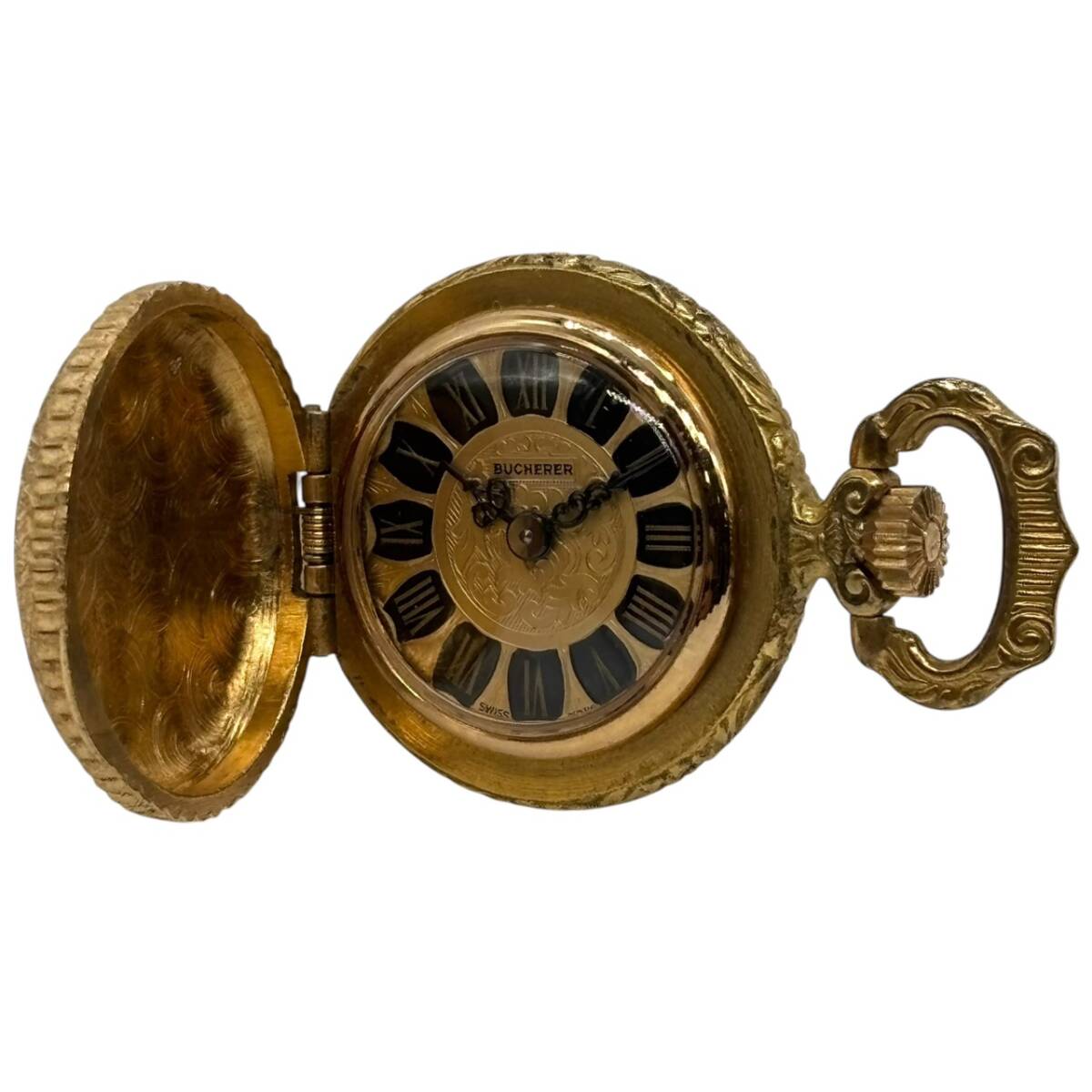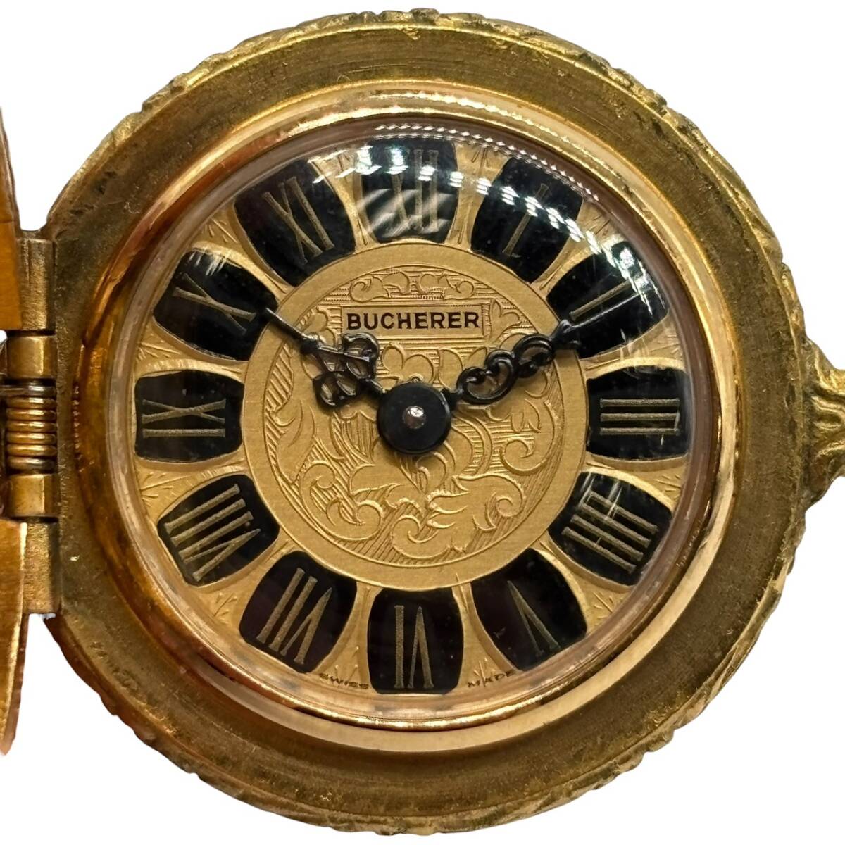 | 稼働 BUCHERER ブヘラ ラウンド ゴールド 手巻き 懐中時計 花柄 ローマインデックス |