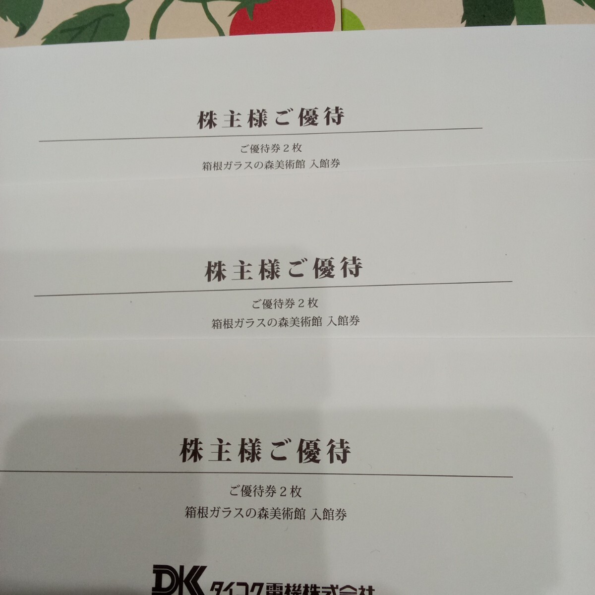 箱根ガラスの森美術館ご入場招待券 ダイコク電機株主優待券 6枚セット