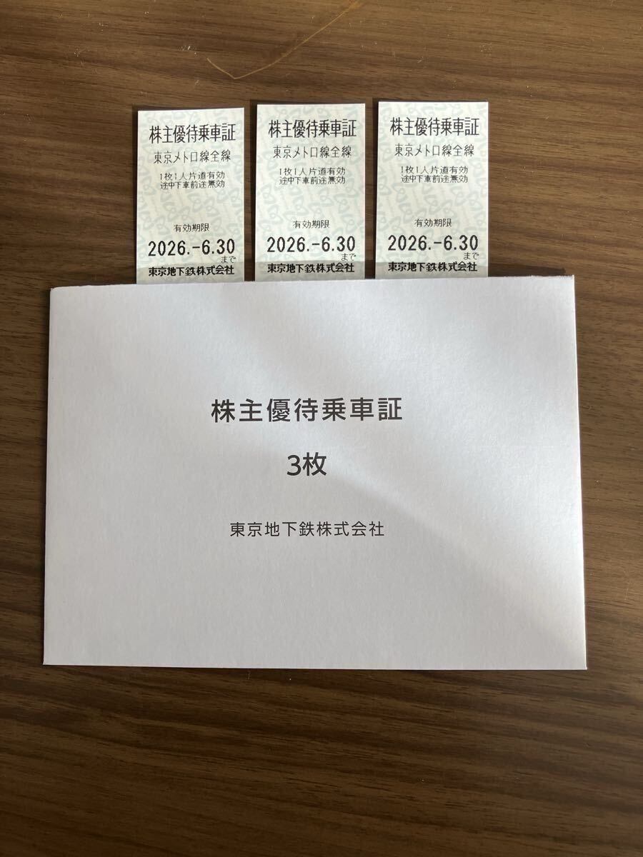 東京地下鉄株式会社 東京メトロ メトロ 株主優待乗車証 3枚 未使用