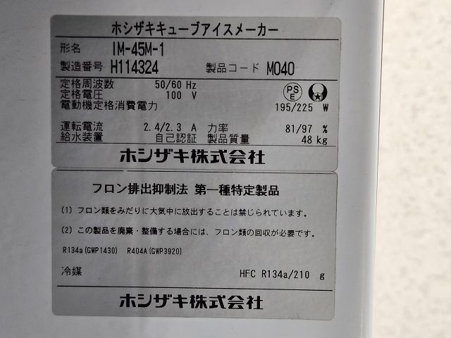 | 製氷能力 | 室温20℃時:約45/49kg 室温30℃時:約39/44kg |