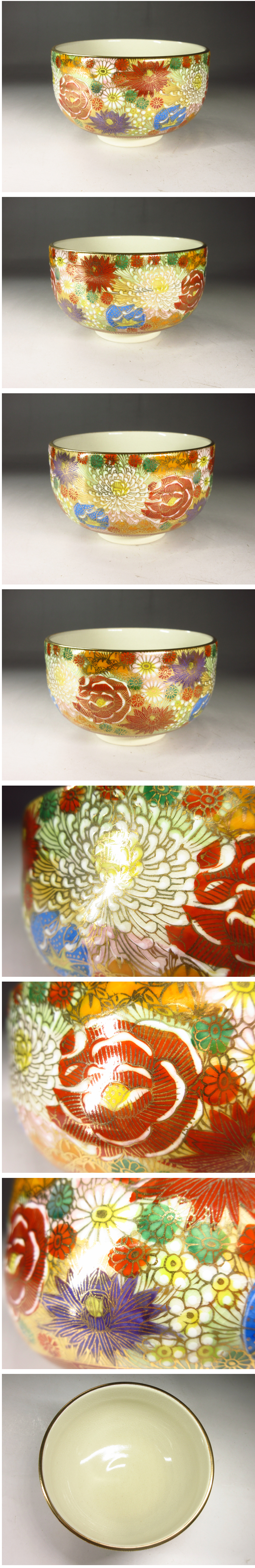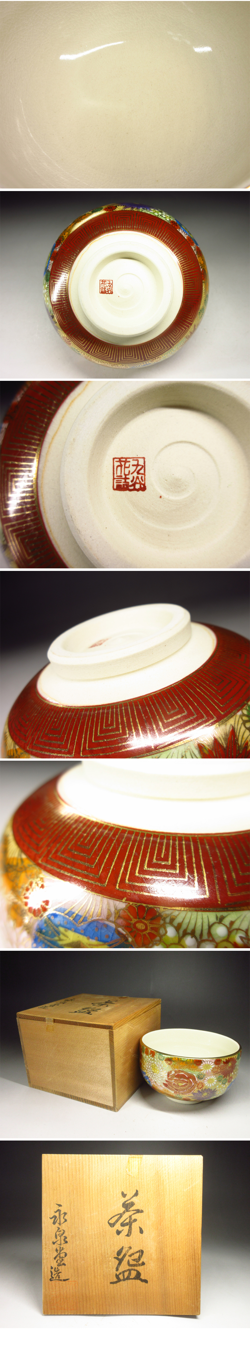 『永泉堂』造 金彩色絵花詰茶碗 共箱 京焼 茶道具 本物保証