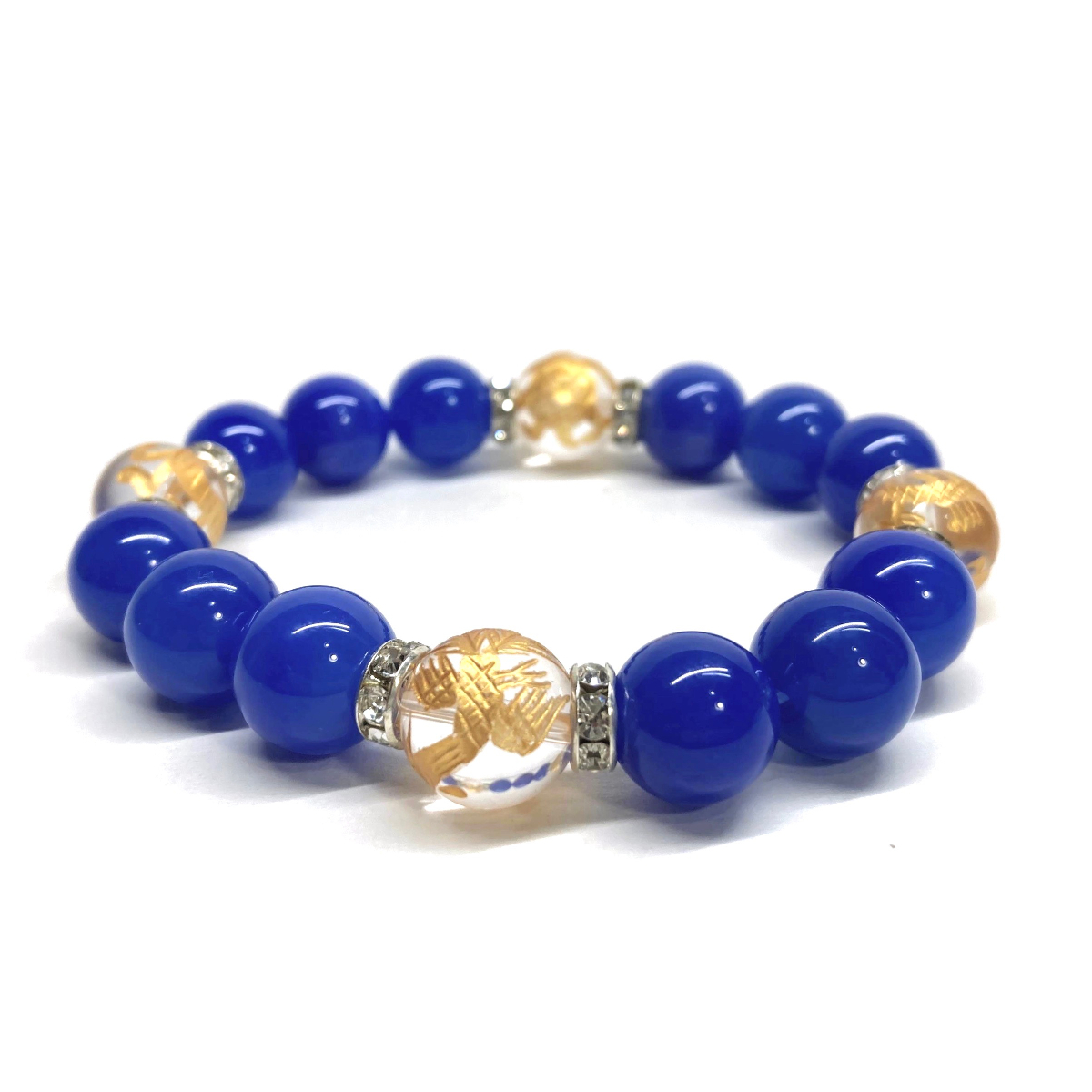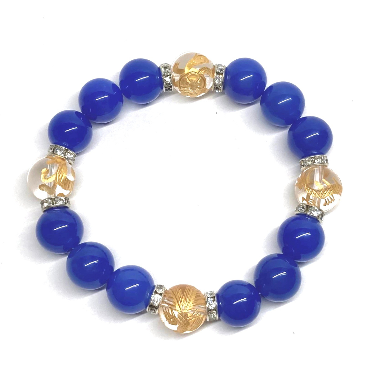四神獣金彫水晶×青瑪瑙 12mm パワーストーン ブレスレット天然石 青龍 白虎 玄武 朱雀 運気上昇 お守り 金運 健康運 四神獸 四神相応 S