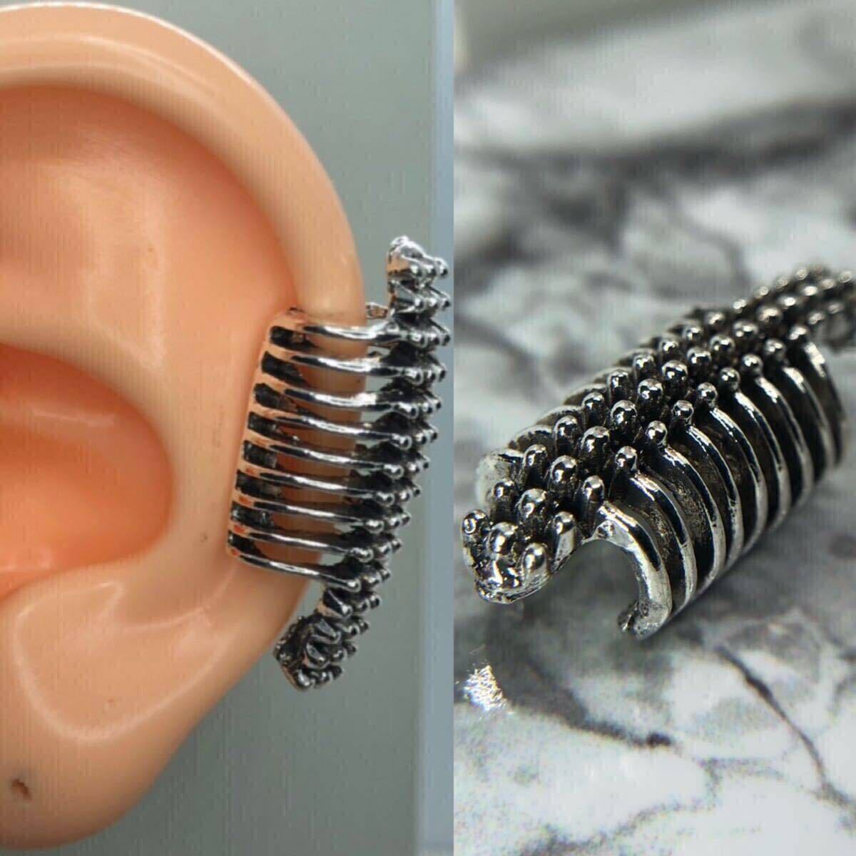 【新品】イヤーカフ 1個 骨 髑髏 ドクロ メタル パンク 背骨 骸骨 スカル ピアス イヤリング