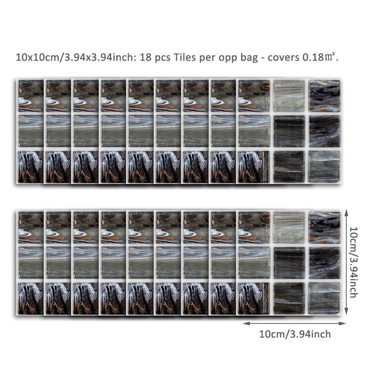 貼付けカンタン! 剥がせる タイルシール 10cm×10cm 18枚入り C735_002 キッチン 台所 洗面所 玄関 フロアシート 防水リメイクシート