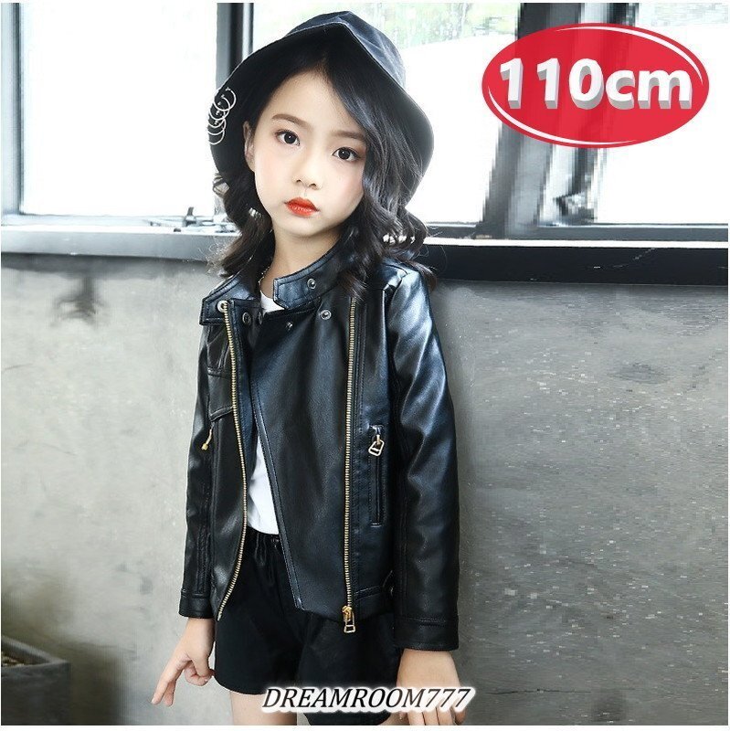 kids girl 2way ライダースジャケット 【ブラック 110cm】 韓国子供服 レザー ハード ライトアウター K-273