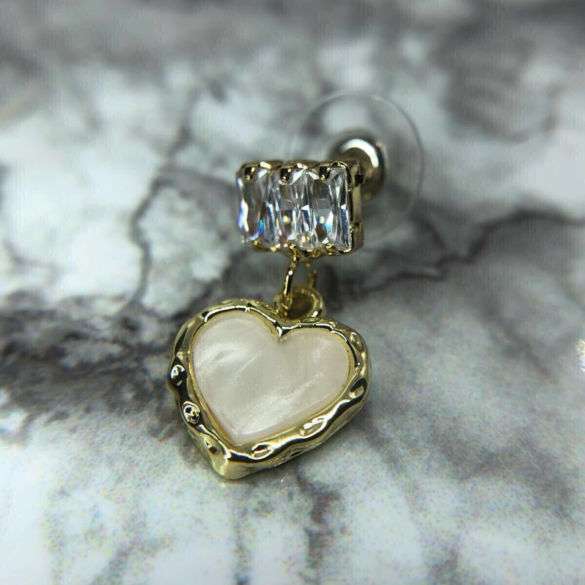 【新品】スタッド ピアス 18g ドロップ ハート ホワイト ゴールド 韓国 片耳 かわいい レディース