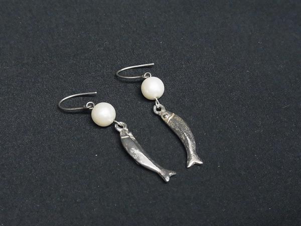 ■美品■ KENZO ケンゾー パール フィッシュ 魚 フック式 ピアス アクセサリー レディース シルバー系 DG5674