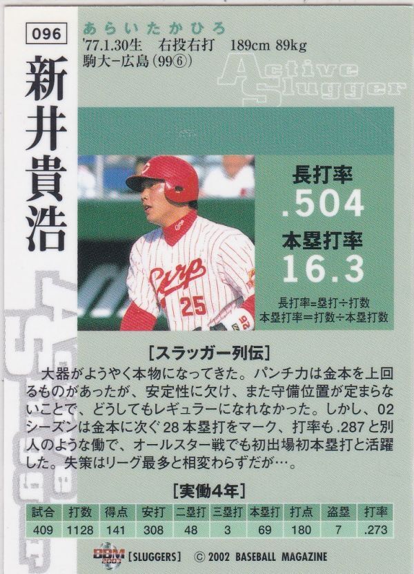 ●2002BBM/SLUGGERS 【新井 貴浩】 現役レギュラー No.096:広島