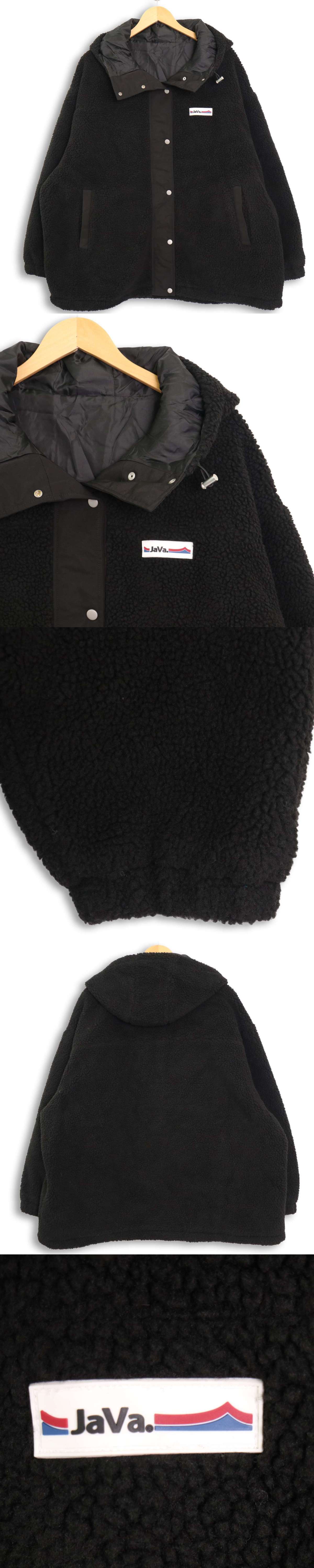 JaVa ジャバ 秋冬 中綿★ ボア フリース フーディー ブルゾン ジャケット Sz.XL レディース 黒 大きいサイズ