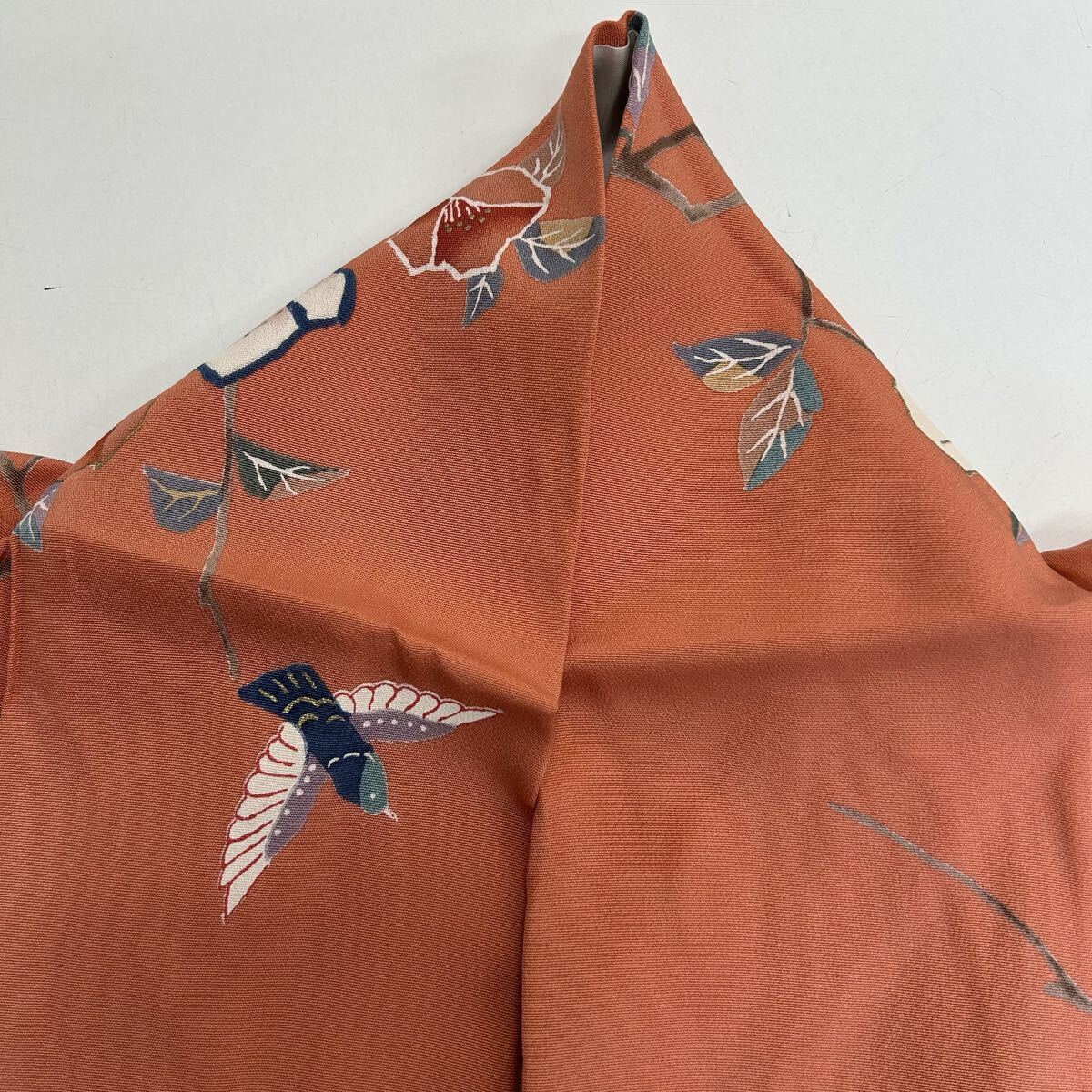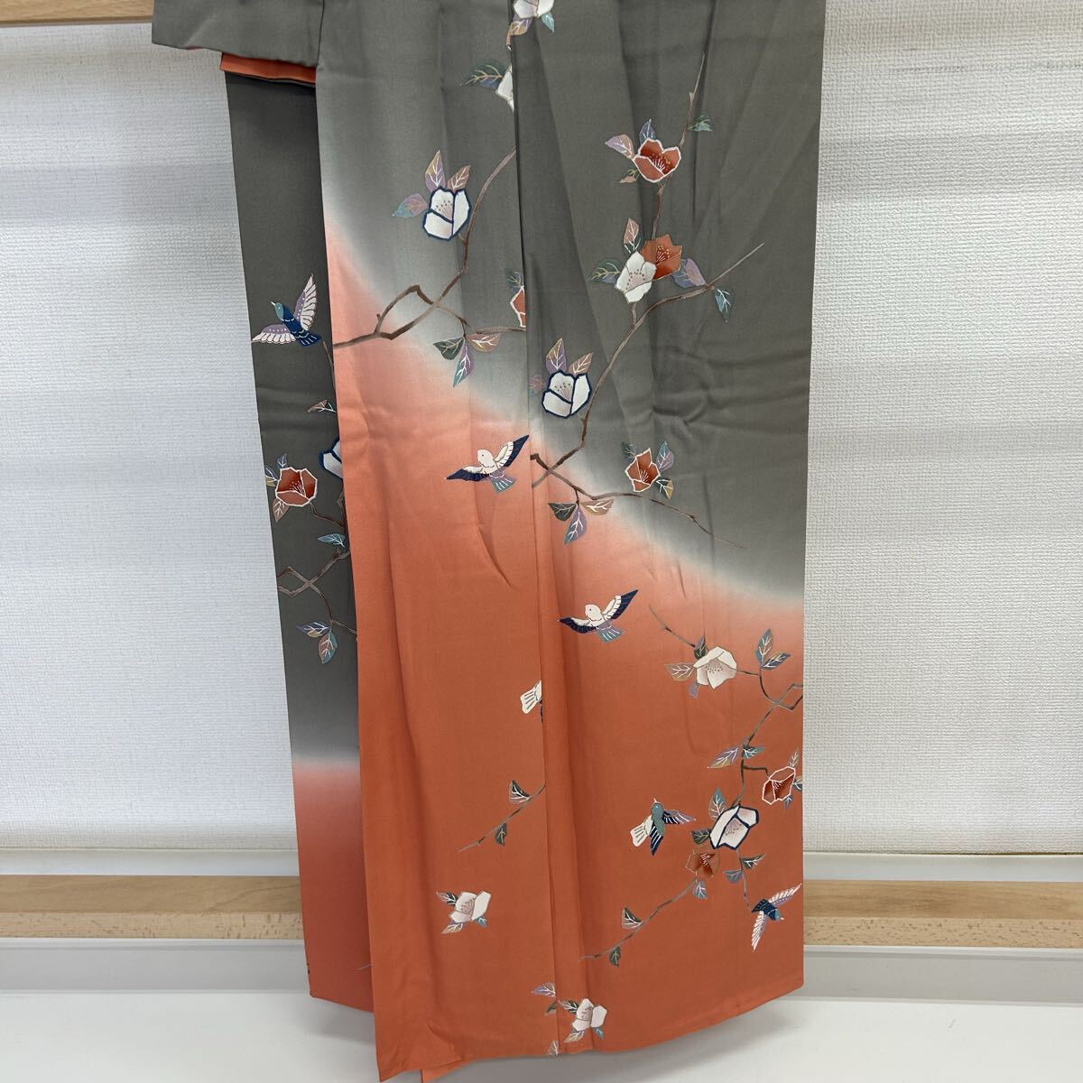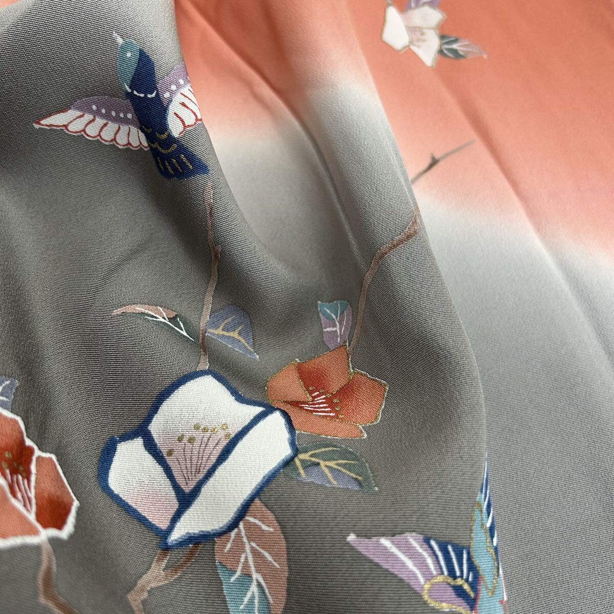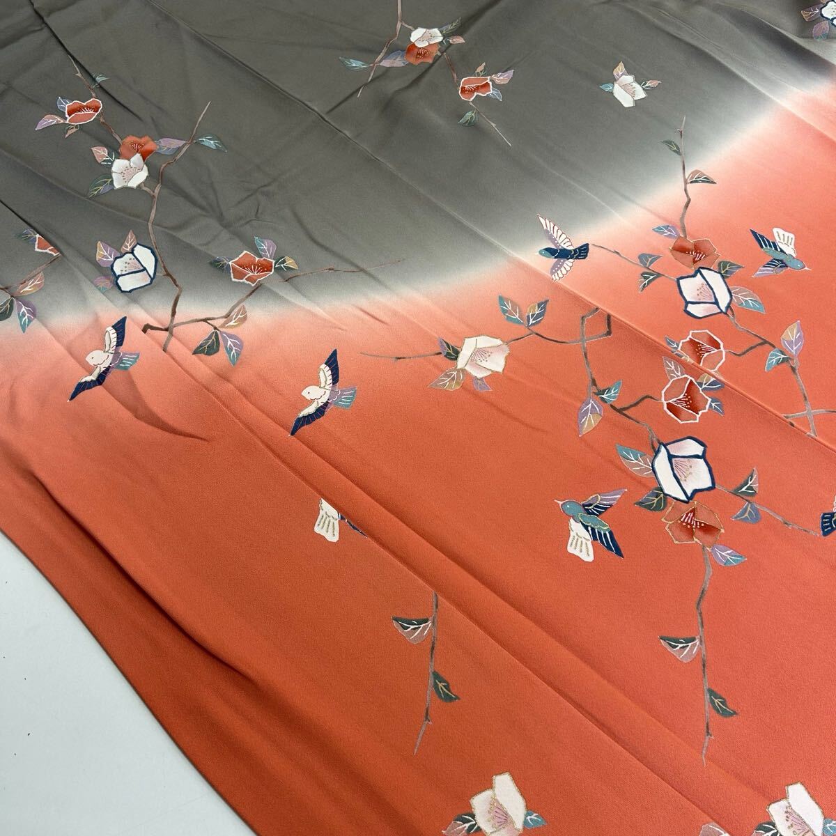 付下げ 裄66 正絹 鳥花 暈しの美しい染め 紋なし 着物 F-3272