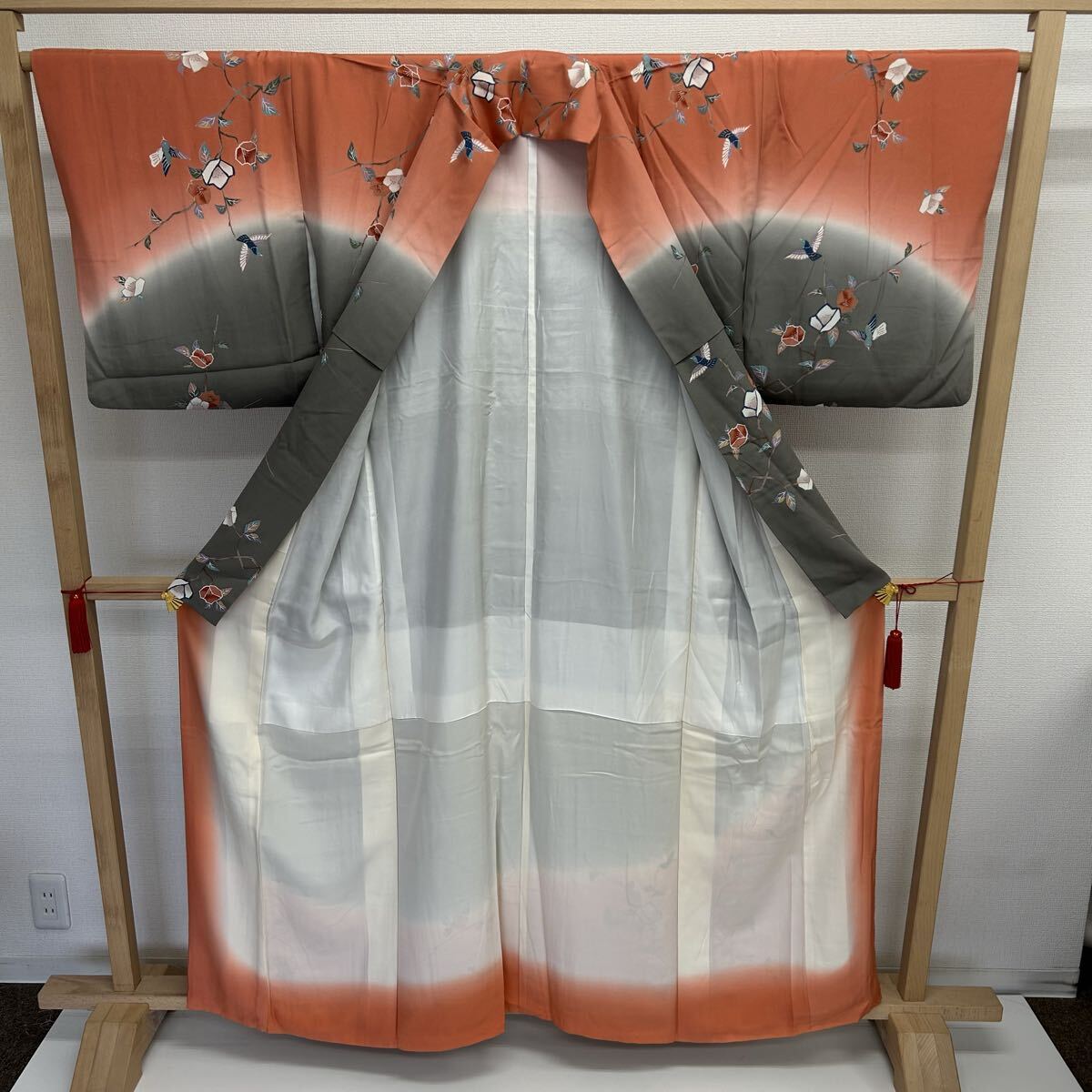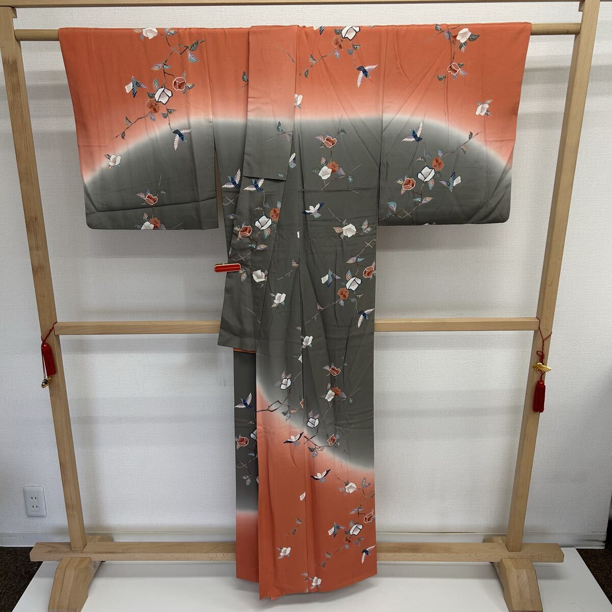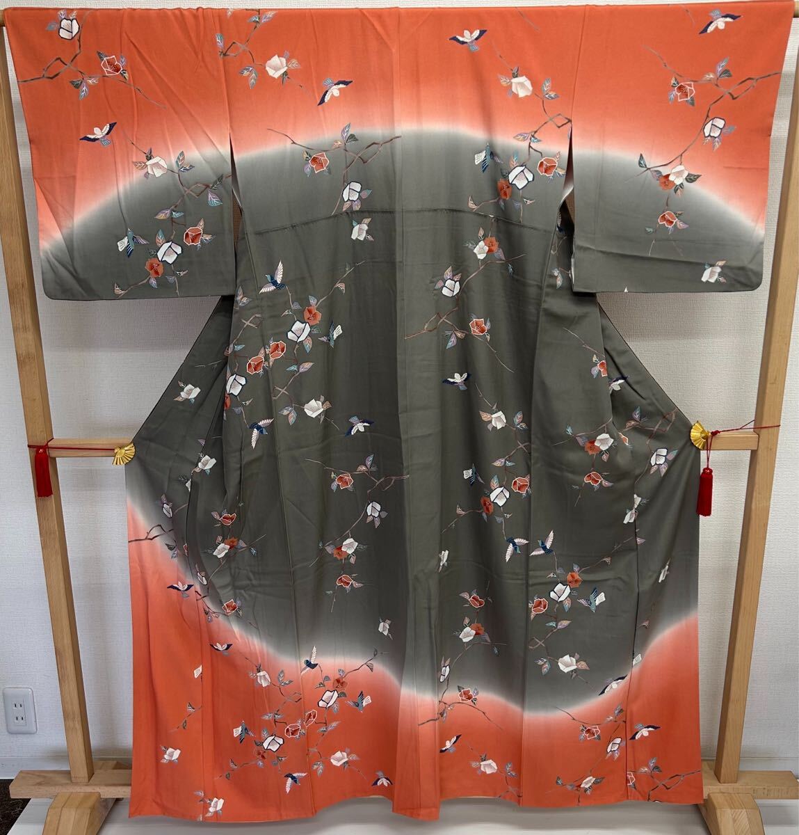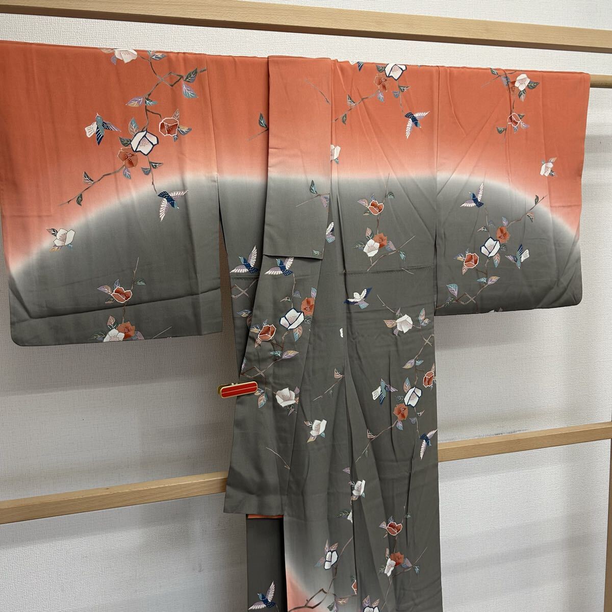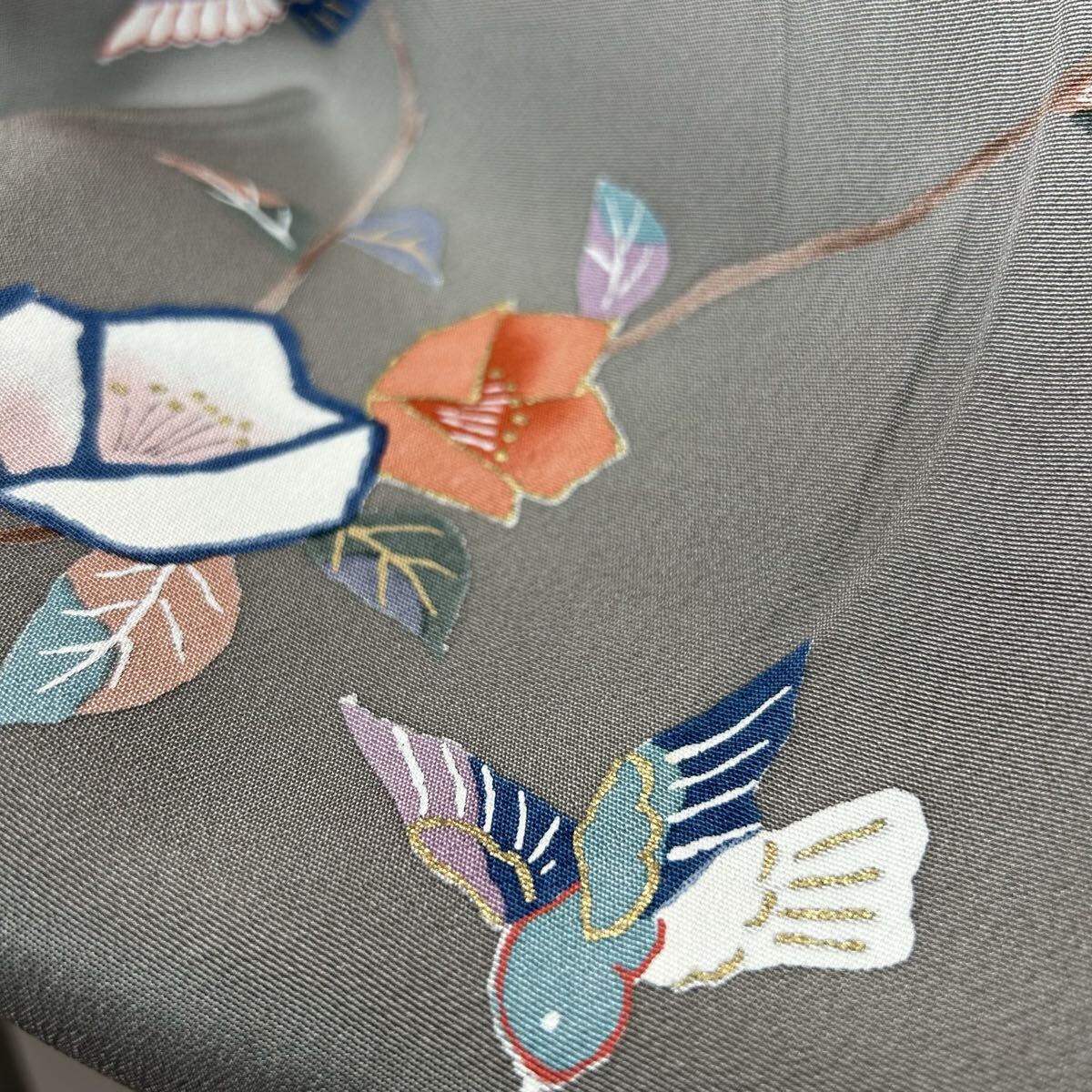付下げ 裄66 正絹 鳥花 暈しの美しい染め 紋なし 着物 F-3272
