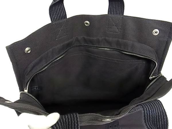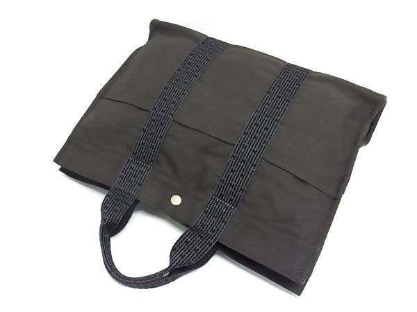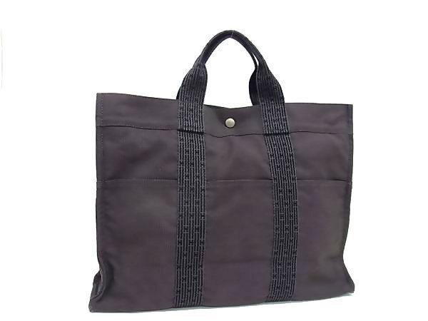 1円 HERMES エルメス エールラインMM キャンバス シルバー金具 ハンドバッグ トートバッグ レディース メンズ グレー系 GC0798