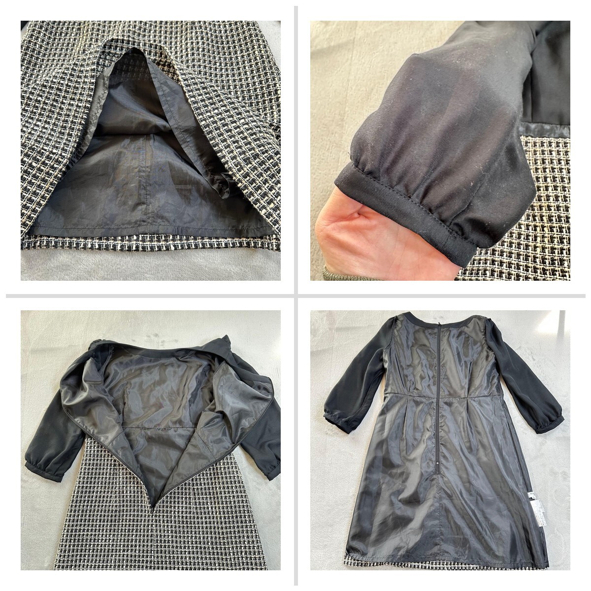 ナチュラルビューティーベーシック ツイードワンピース フォーマル シアー袖 黒 2E2A7F