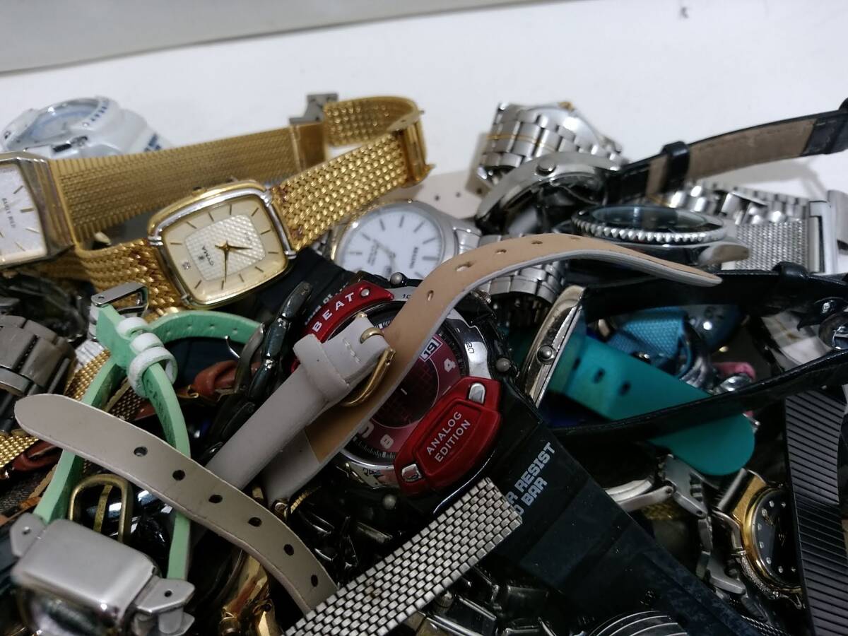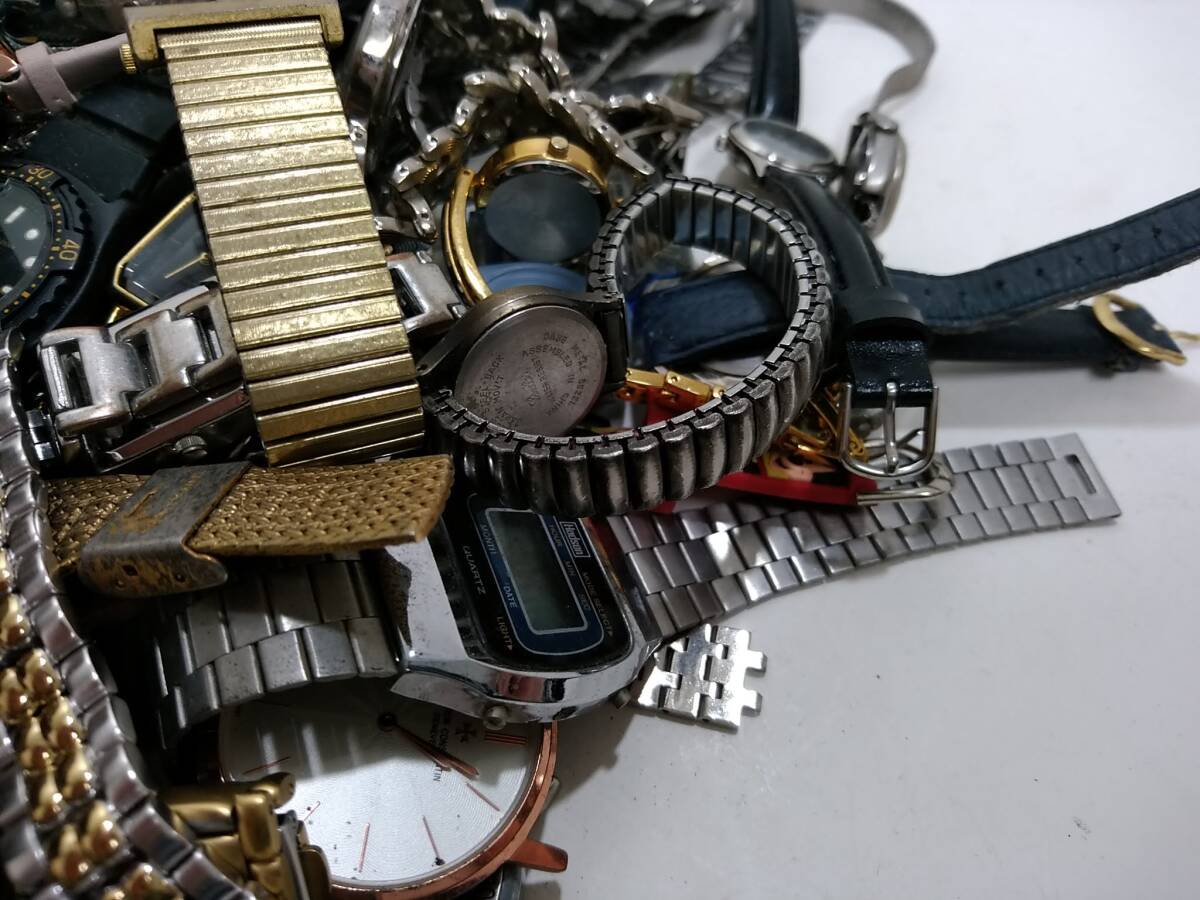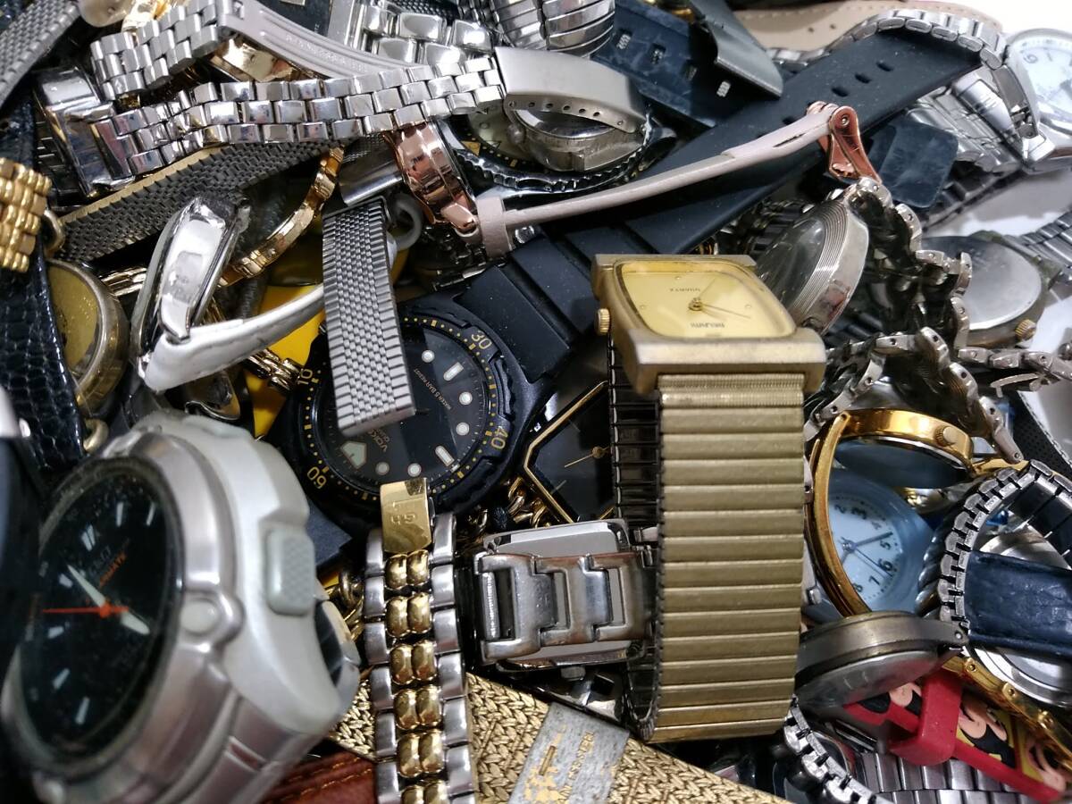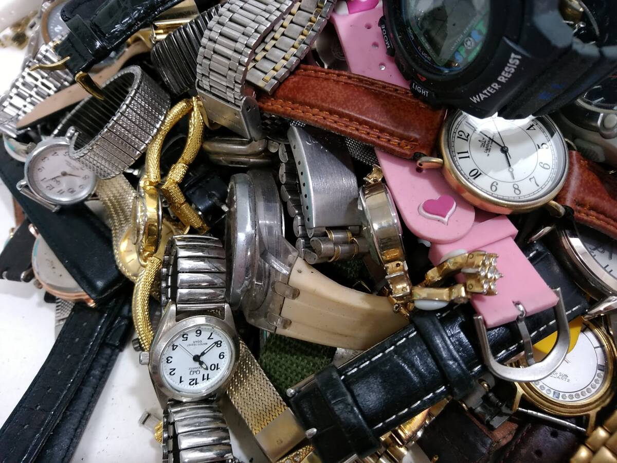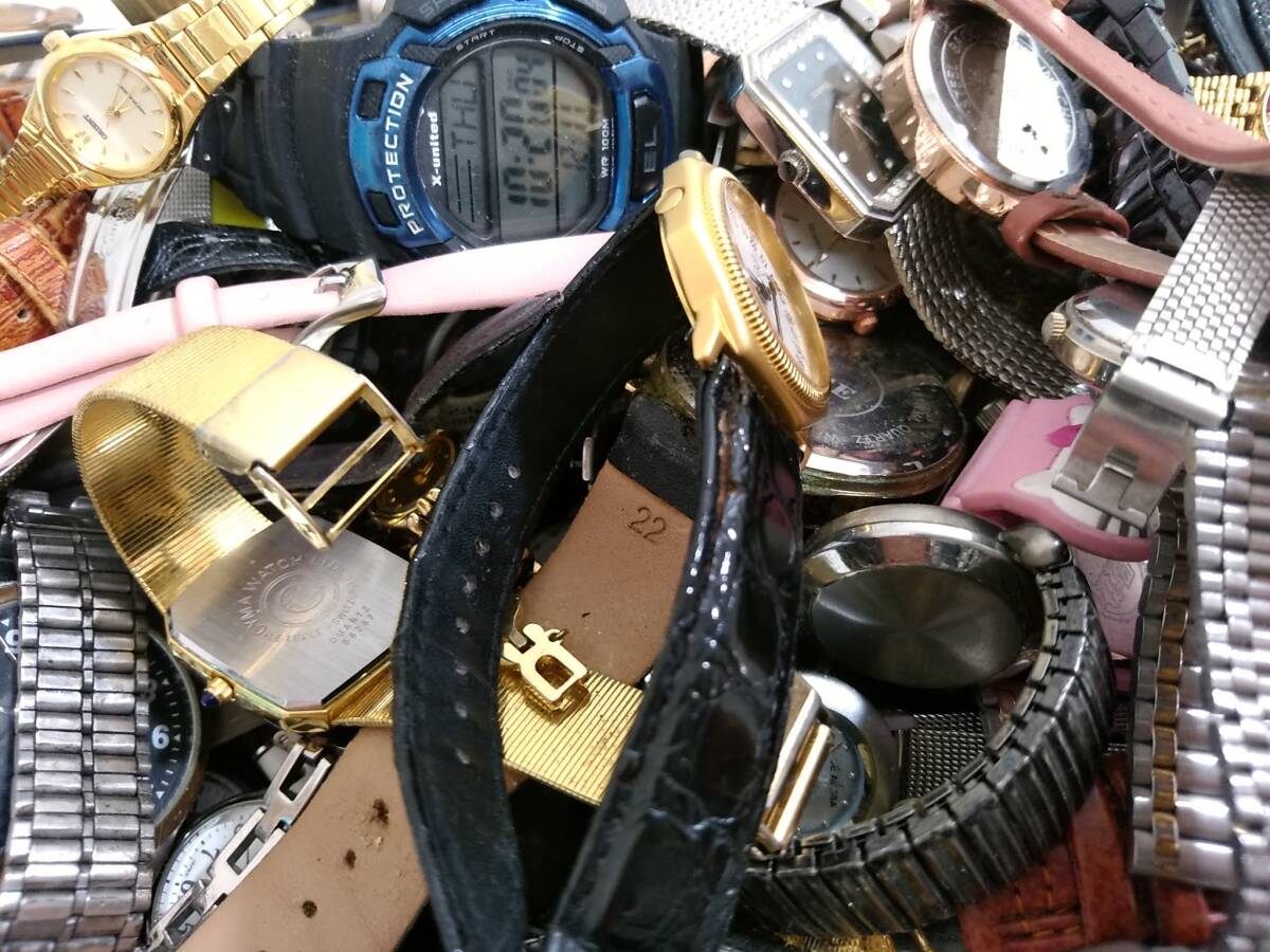 ※佐川急便の場合、離島など別途中継手数料がかかる地域が御座います。 その場合はお振込みを追加でお願いする場合が御座います事、 事前にご了承の程、宜しくお願い致します。 [商品名] 1円スタート ジャンク腕時計 大量*同梱不可* 約175点セット ジャンク品とは…作動確認できない物や、破損、傷み等の有る物です。 部品取り等にいかがでしょうか。 キズや汚れ、割れ、欠け、金属の変質、破損のあるものもあります。