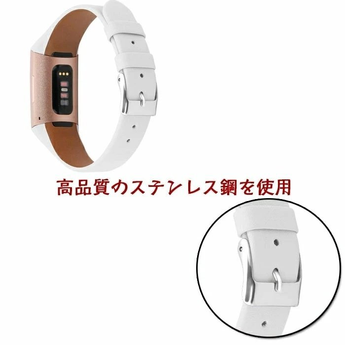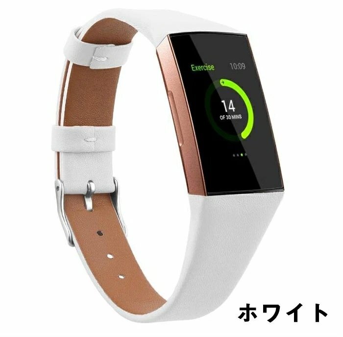 Fitbit Charge 3 対応交換バンド Fitbit Charge4 交換ベルト バンド 本革 牛革 フィットビット チャージ3 交換バンド【ホワイト/サイズL】