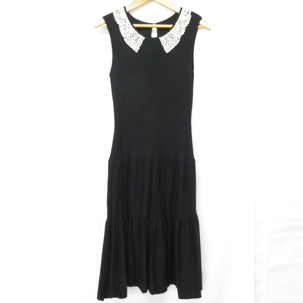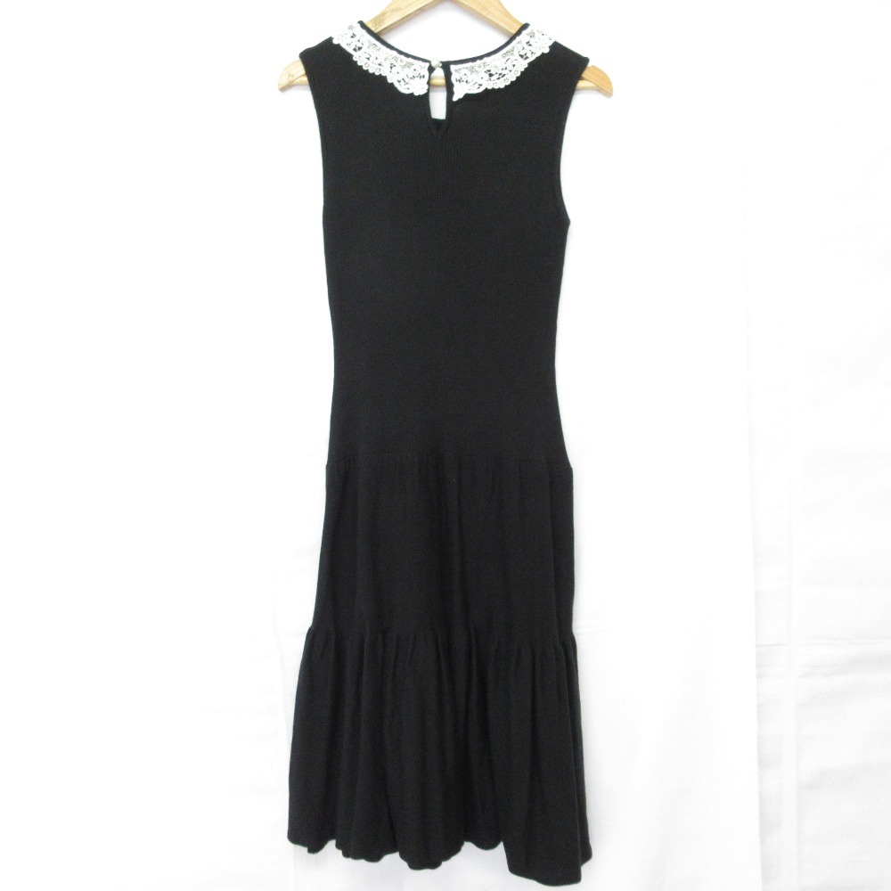 商品名:Rene ルネ パール レースカラー ノースリーブ ひざ丈 ニットワンピース 34 ブラック