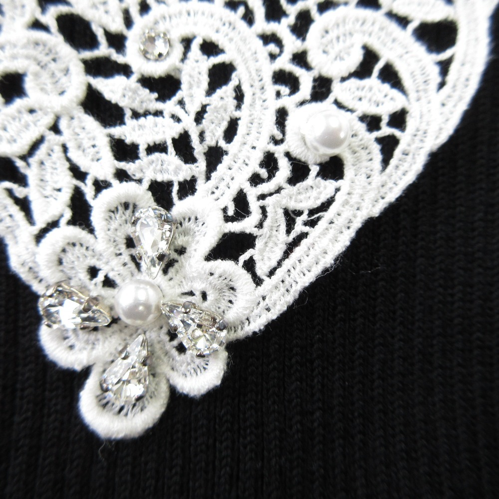 美品 Rene ルネ パール レースカラー ノースリーブ ひざ丈 ニットワンピース 34 ブラック
