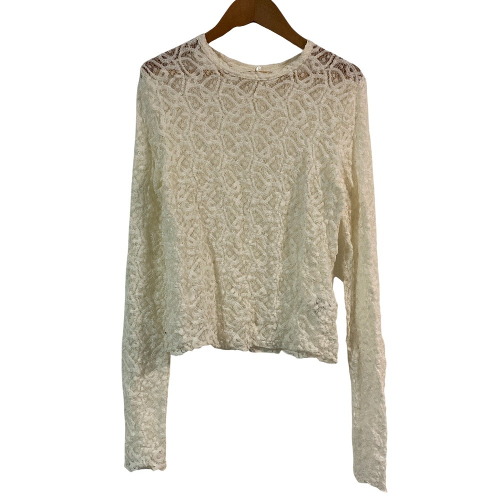 美品 24AW IENA イエナ ペイズリー ストレッチレースプルオーバー ブラウス ホワイト