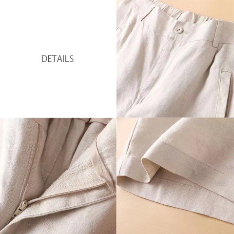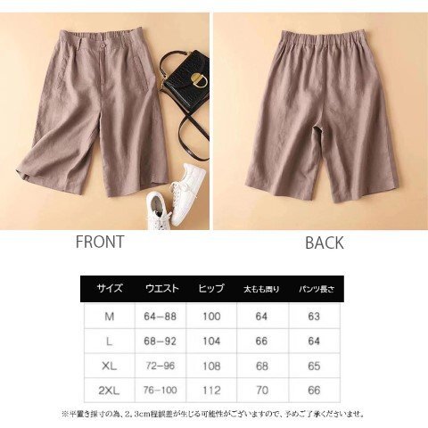 ・ハイウエスト仕様なので脚長・着痩せ効果が期待できます。フロントはスッキリときれいめな印象なのに、後ろがゴムなのでリラクシーな着心地。通気性に優れた綿麻生地で春夏も快適に過ごせます。