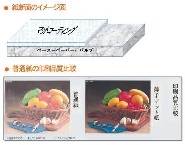 | つや消しタイプなので、落ち着きのある鮮明な仕上がりになります。 ポスター、写真、展示資料等、様々な用途にお使いいただけます。 | ||||||||||||||||||