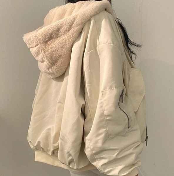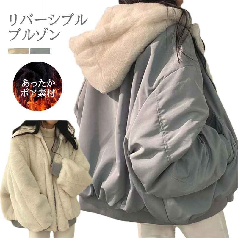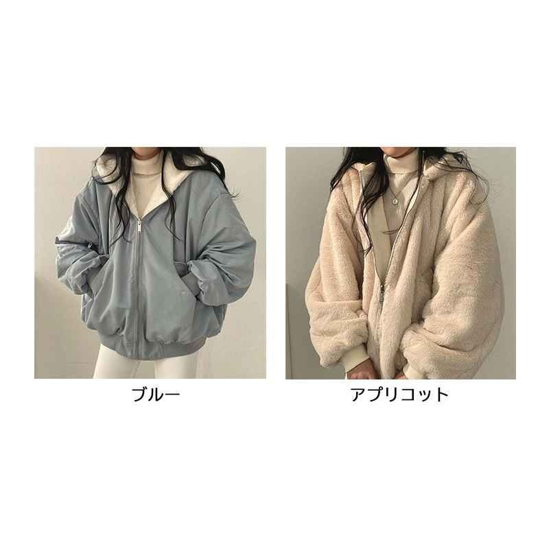 ・ふんわり羽織れてフードつきで大人カジュアルに着こなせる1着。リバーシブルなので、スタイリングによって雰囲気を変えられます。
