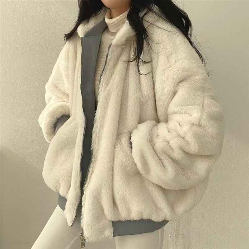 ・肌ざわりの良いボア素材で保温性がありあったか。ボディラインを拾いにくくオシャレに体形カバーできます◎