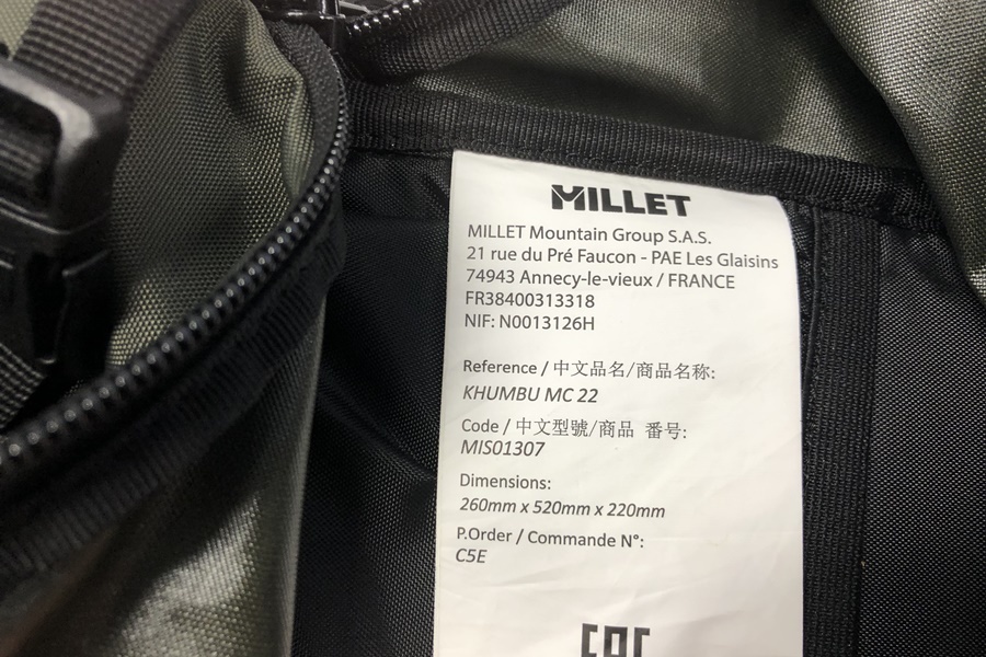 MILLET ミレーKHUMBU MC クンブ マウンテンクルーズ22 MISO1307 DEEP JUNGLE 「付属品」・・・ 写真のものがすべてになります。