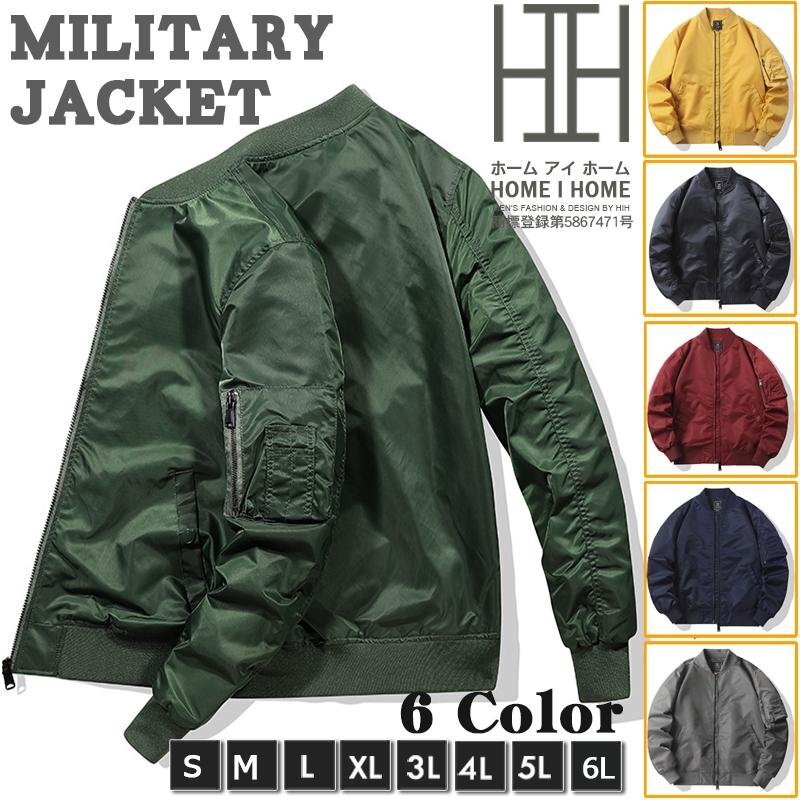 ミリタリージャケット ブルゾン メンズ 無地 立ち襟 MA-1 バイク用 薄手 秋物 MA1 ミリタリー系 カジュアル オシャレ アウター カッコイイ ストリート