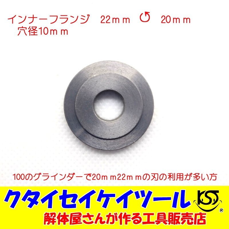 100mmのグラインダーで内径22mmと20mmの刃、ディスクを使用になれるようになります。