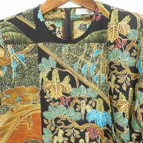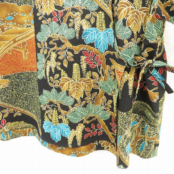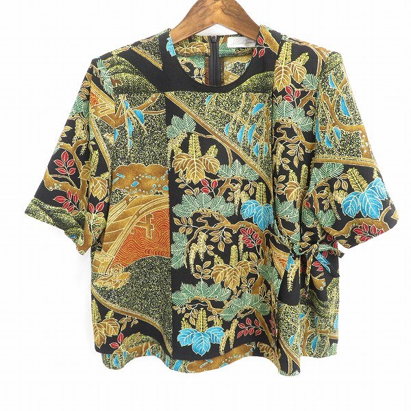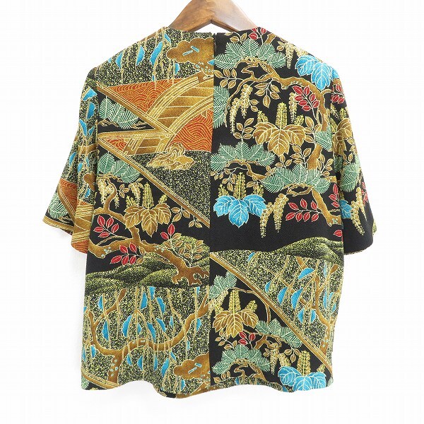 #s 詩仙堂 ヒトシタムラ カットソー 半袖 黒 マルチ 総柄 作務衣風 ちりめん 縮緬 和風 和柄 和装 日本製 レディース 942901 k01