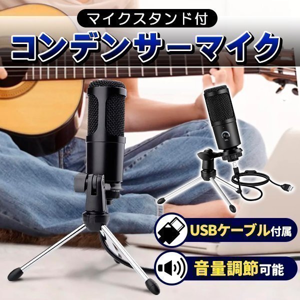 マイク コンデンサーマイク USBマイク PCマイク 単一指向性 PCゲームマイク ノイズ軽減 ミュートボタン LED指示ライト マイクスタンド付き