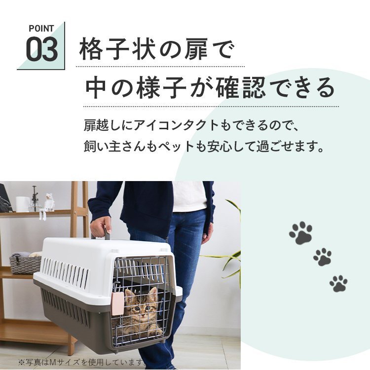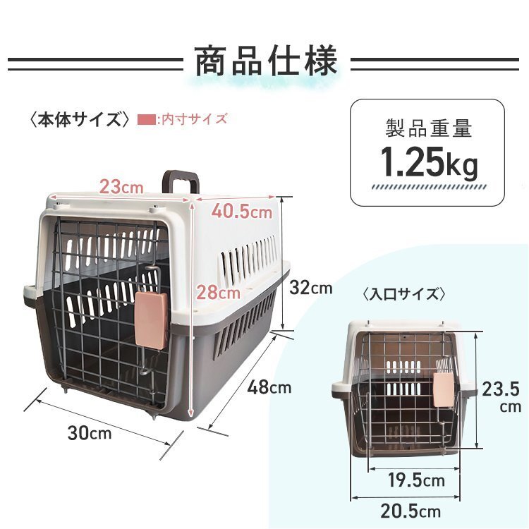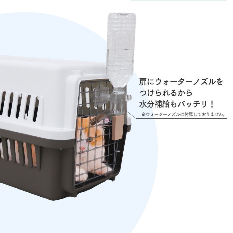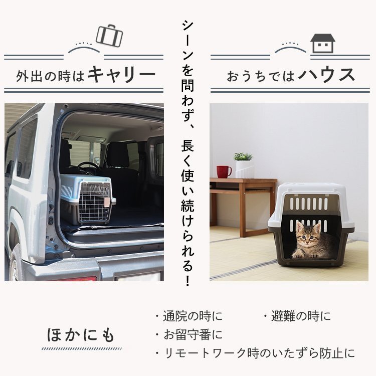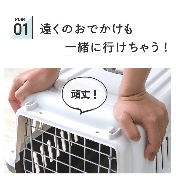 外出時にはキャリーとして、お家ではハウスとして重宝します! 上部はプラスチックの一枚板をボルトでがっりり固定! しっかりした造りなので、飛行機にも預けられます。 ※航空会社の基準によりご利用できない場合があります 格子状の扉&通気口で風通り抜群で快適! また中の様子も確認しやすい!! プラスチック製なので軽くて持ち運びしやすいです♪ 【商品仕様】 カラー:ホワイト×ブラウン サイズ:(約)幅30×奥行48×高さ32cm ※外寸 重量:(約)1.25kg 耐荷重:(約)10kg 材質:ポリプロピレン、鉄 他 適合犬サイズ(目安):超小型犬、猫、小動物 等 |