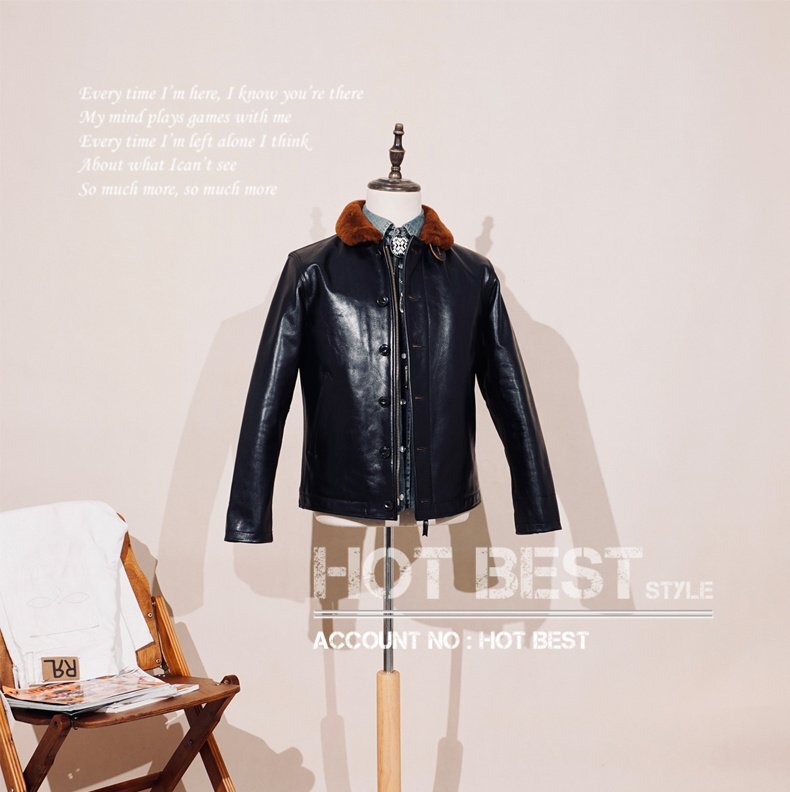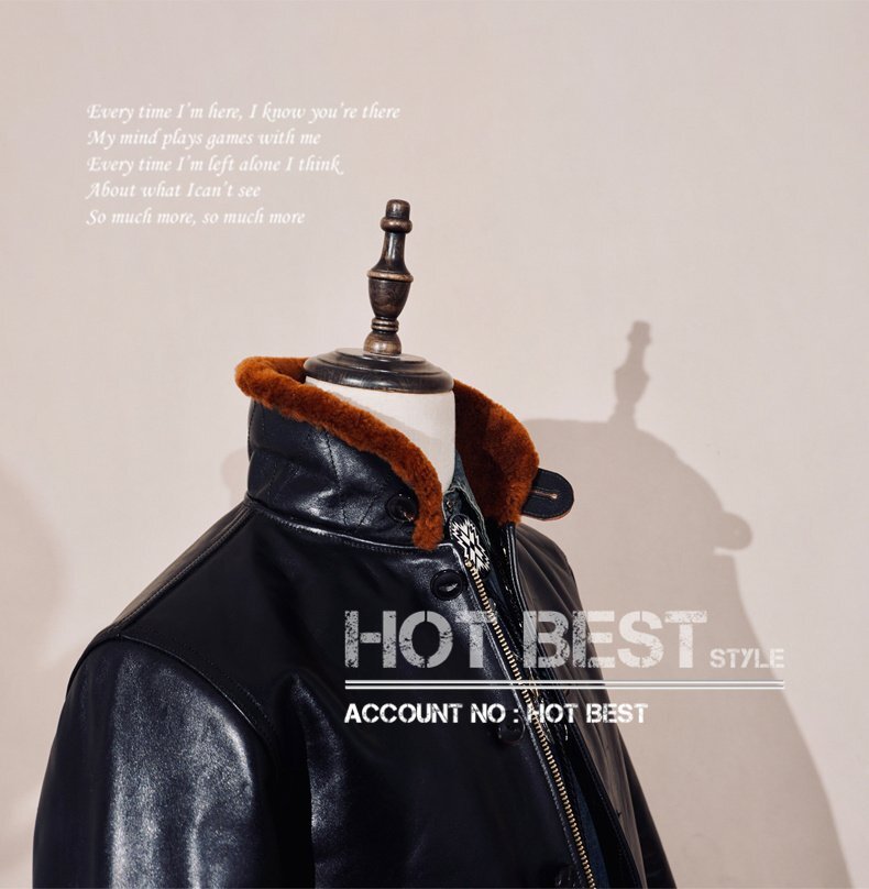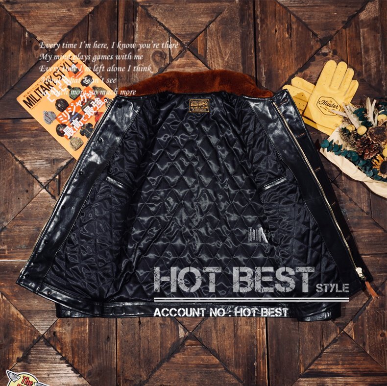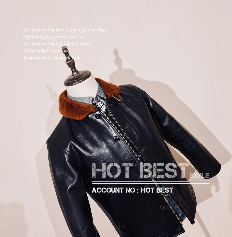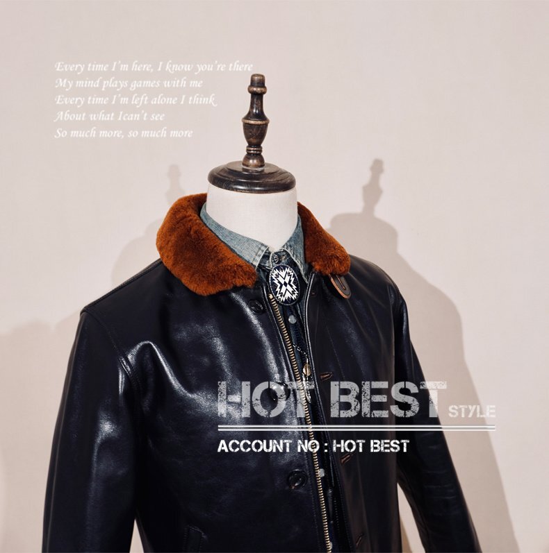 1.4mm 茶芯ホースハイド 復刻30'sスタイルN-1 デッキレザージャケット ムートン イタリアンレザー 馬革 Y3267/S~4XLサイズ指定可