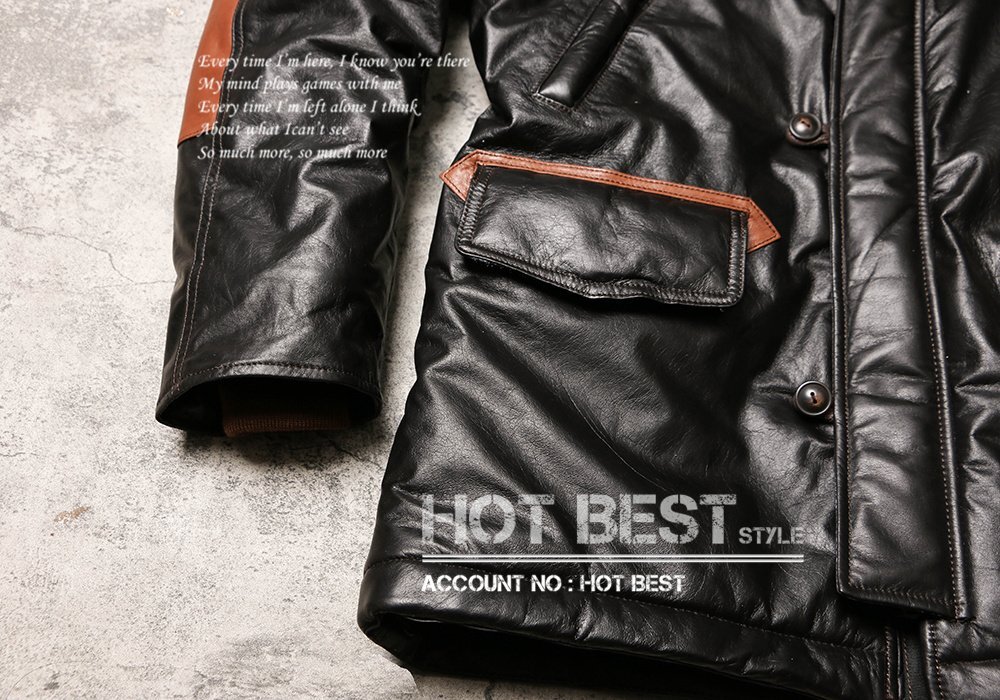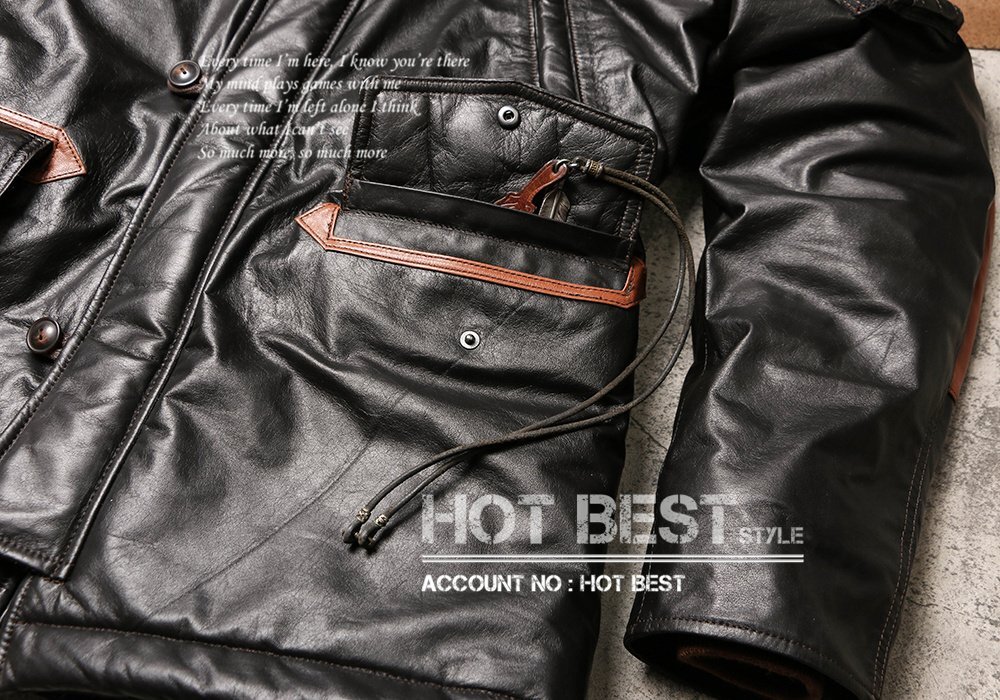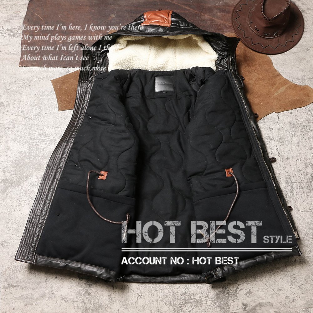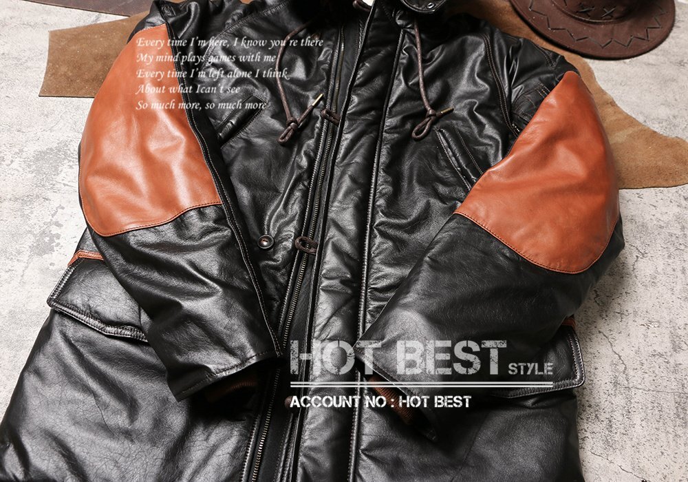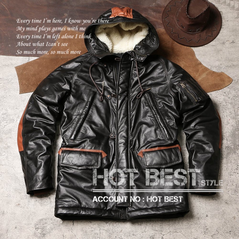 カウハイド USAF TYPE N3-B サファリジャケット 中綿 ミリタリー レザーダウンジャケット ボア フードパーカー オイルレザー 牛革 Y1804【M~4XLサイズ指定可】