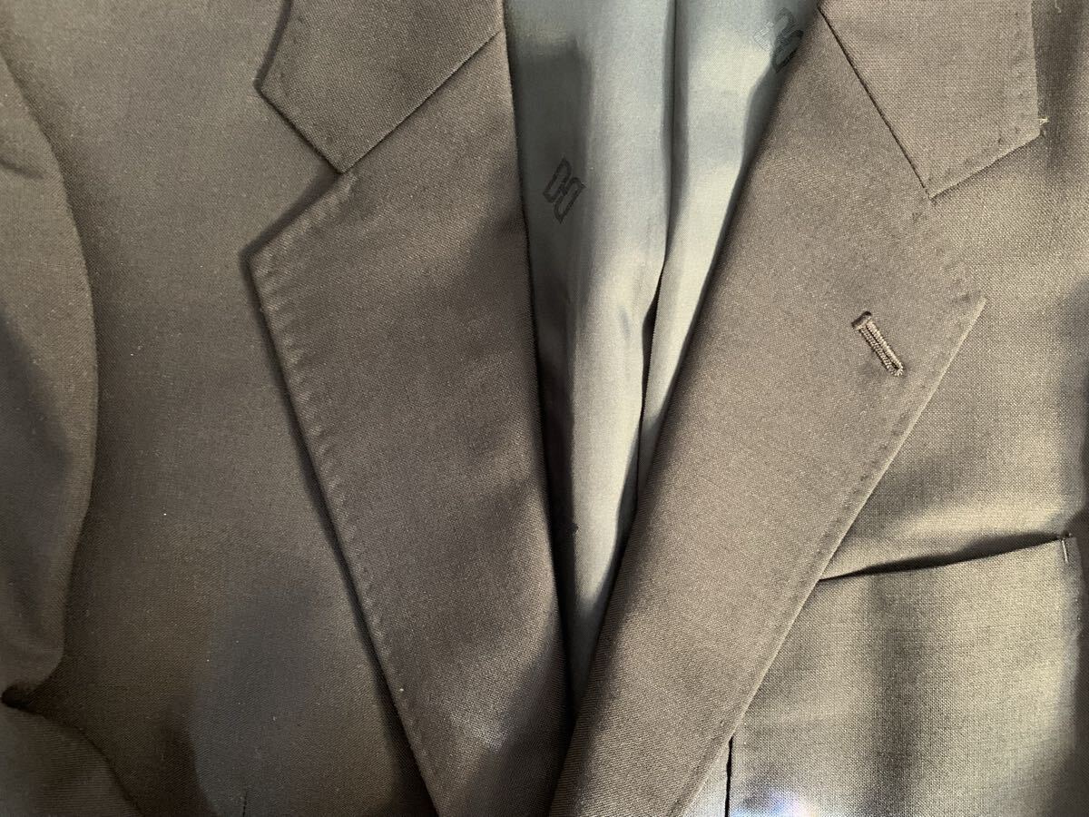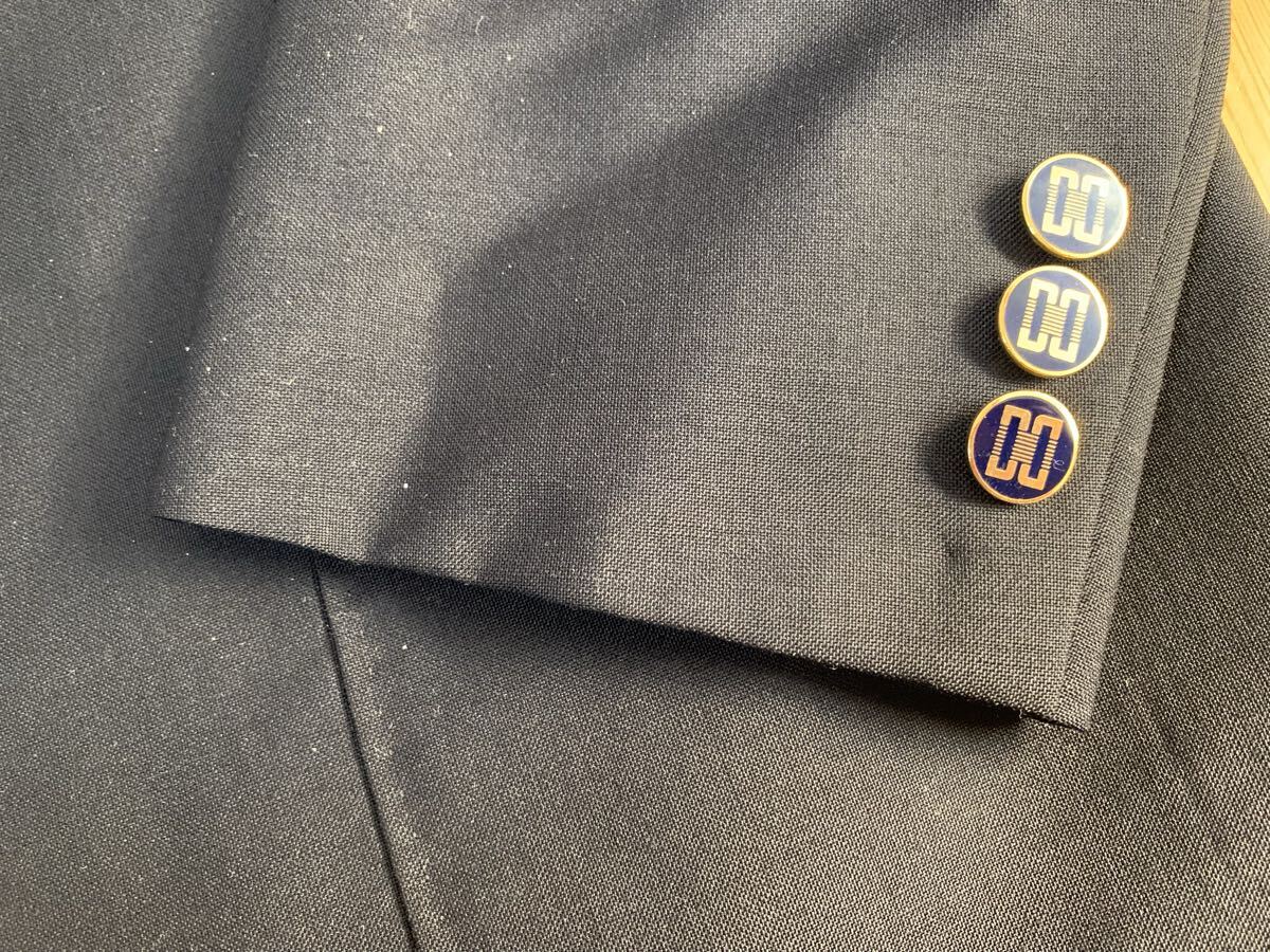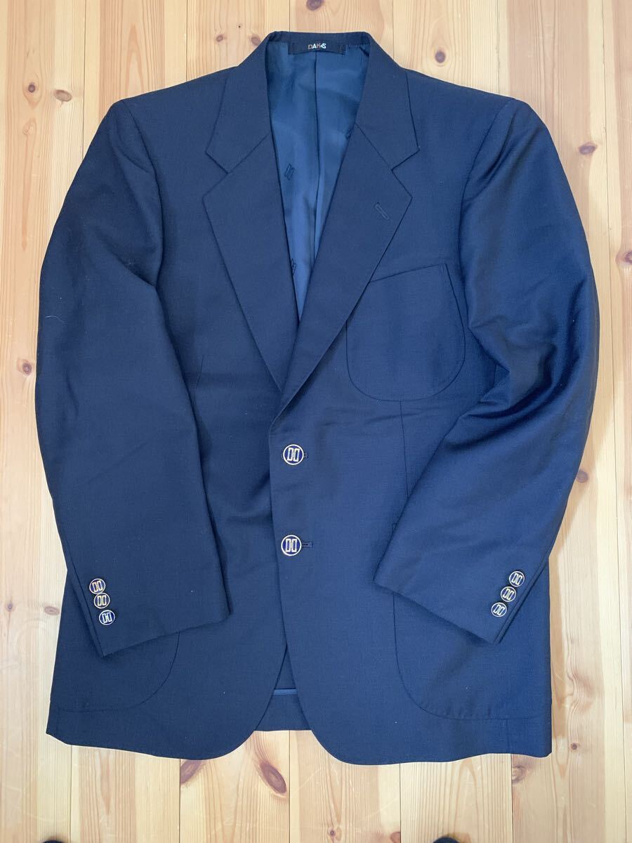 ネイビーのDAKSテーラードジャケット、3つボタン、サテン内側仕上げ。