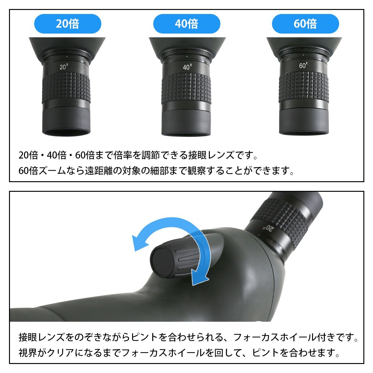 [三脚&専用ケース付き] 20-60倍 ×60mm ズーム 傾斜型 望遠鏡 双眼鏡 単眼鏡 スポーツ 観戦 野鳥 観察 フィールド スコープ
