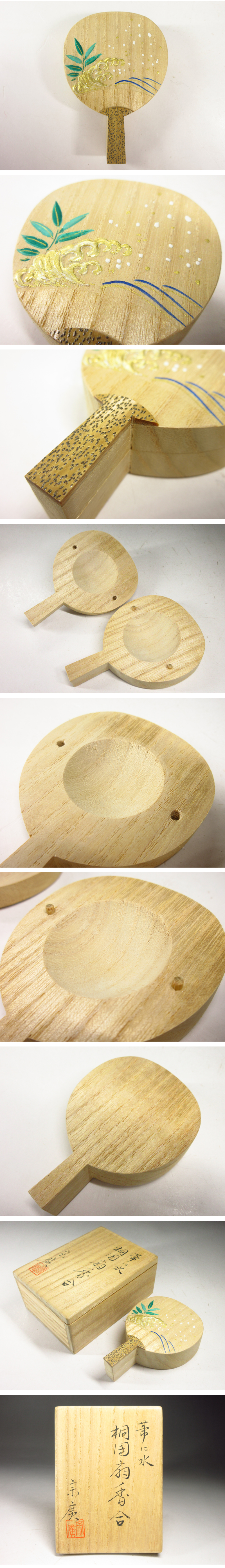 【漸】『道場宗廣』造 葦に水 桐団扇香合 共箱 茶道具 本物保証【HY2922】
