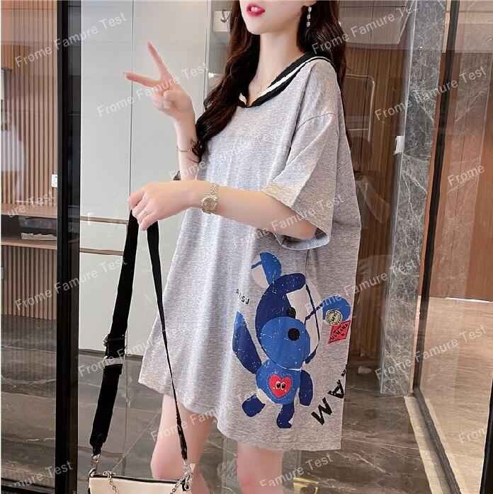韓国風 女夏新しい 大きいサイズ半袖Tシャツ 気質ファッションTシャツ 学生Tシャツ XL グレー