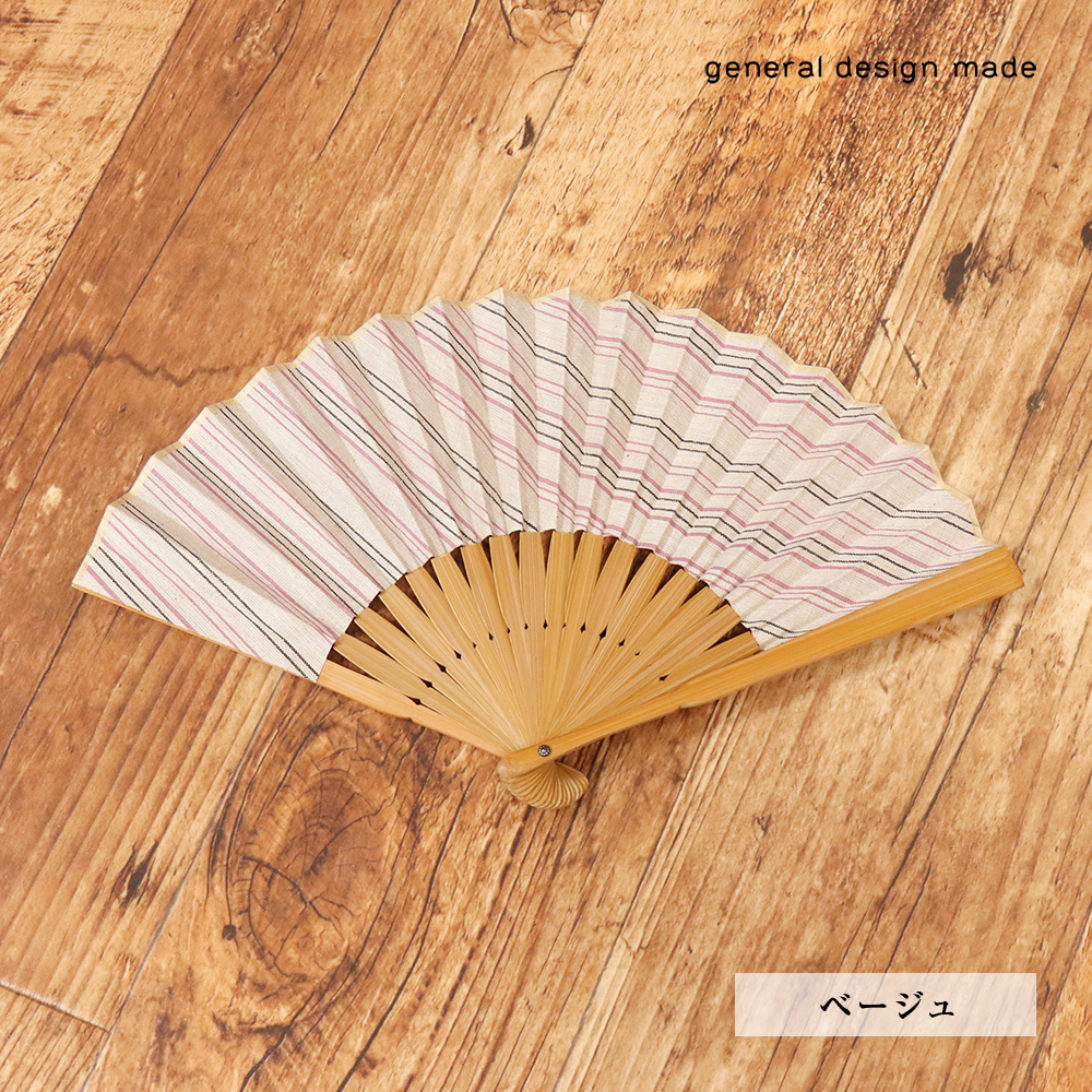 1円/general design made/扇子 会津木綿 コンパクト 男女兼用 ジェネラルデザインメイド 新品/ベージュ/kf389/