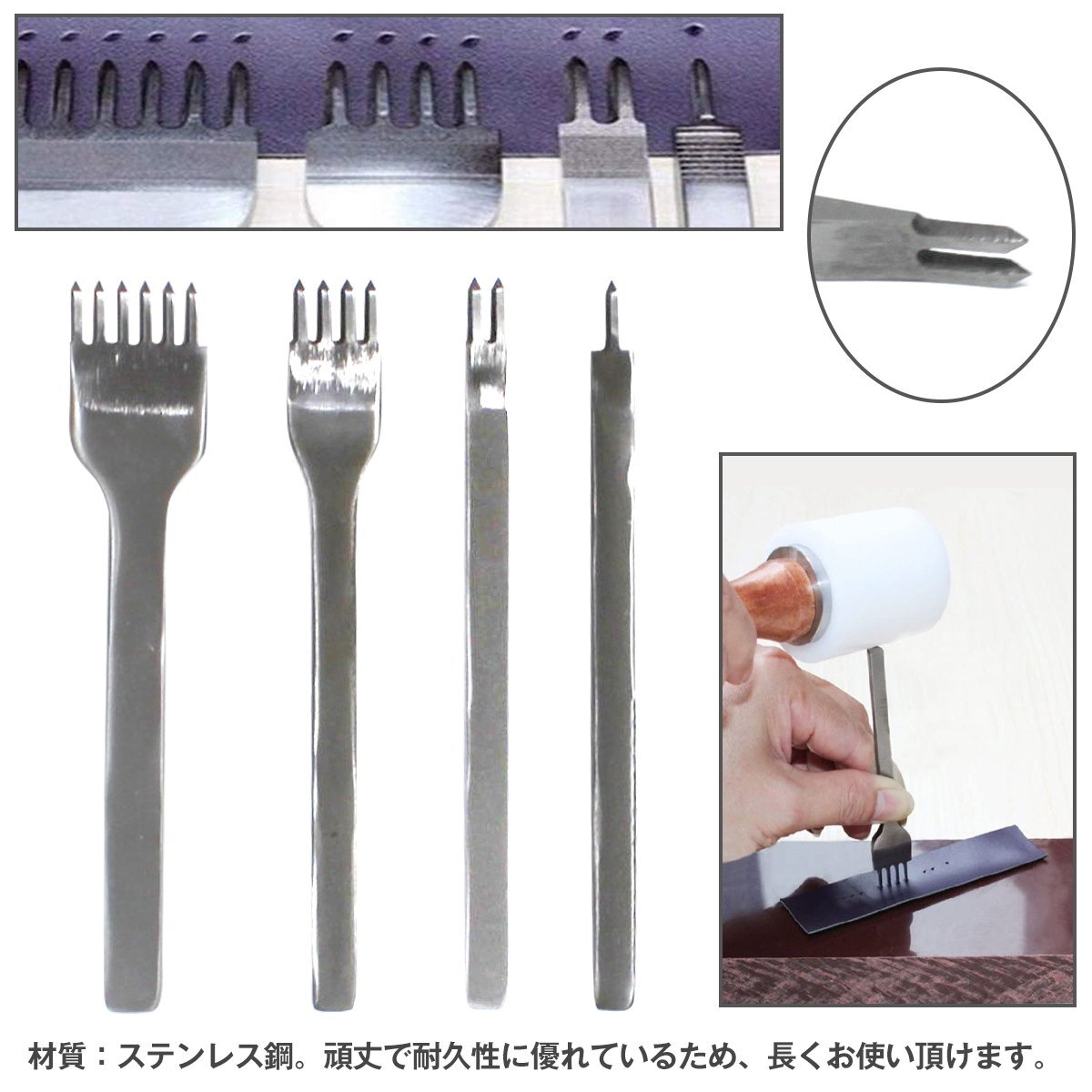 【新品即納】菱目打ち 3mm ピッチ 4本 セット レザークラフト 道具 工具 革製品 皮革 ハンドメイド 縫い穴 手芸 菱目 打ち 用