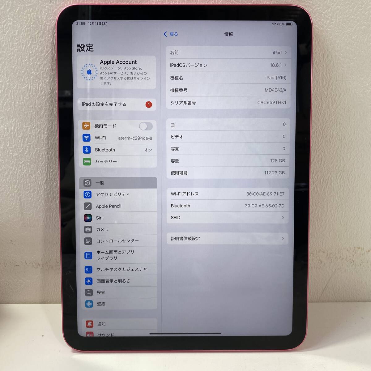 C516 Apple iPad A16 128GB Wi-Fiモデル ピンク MD4E4J/A A3354 中古品 2025 になります。