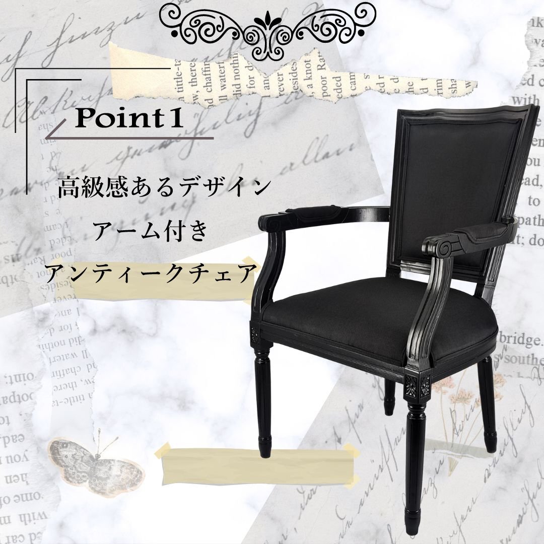 ダイニングチェア ジェネリック家具 デザインチェア 木製椅子 アンティーク風 英国調 クラシカ サロン モダンアームチェア ブラック