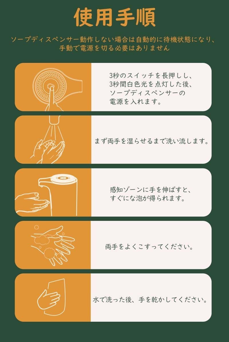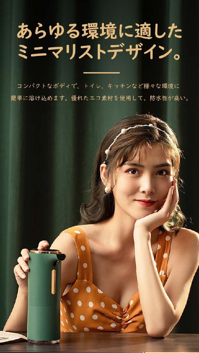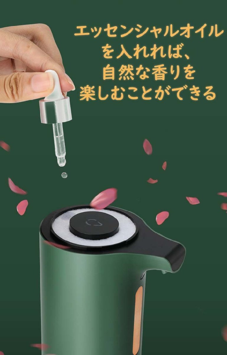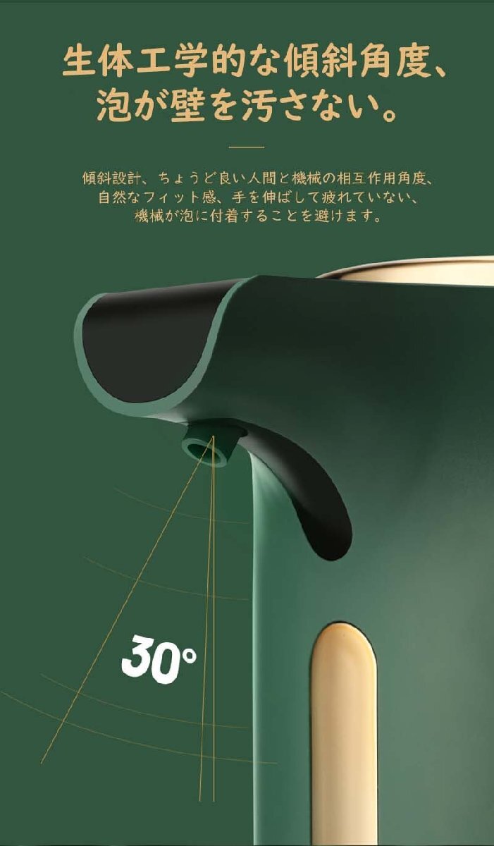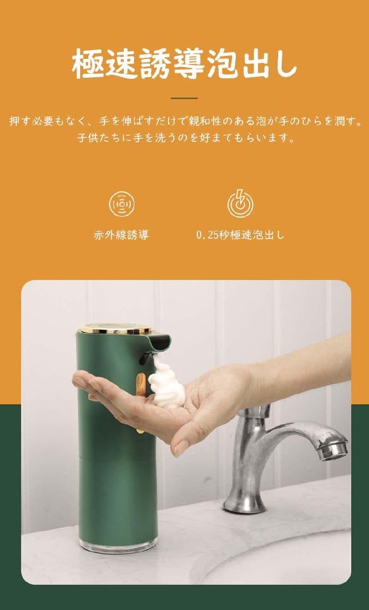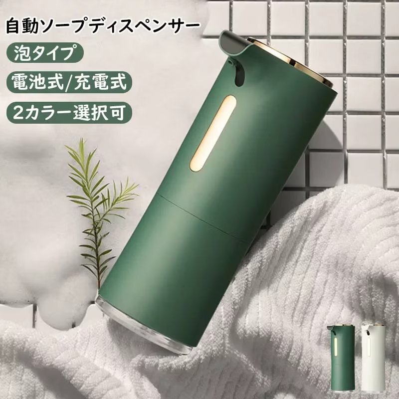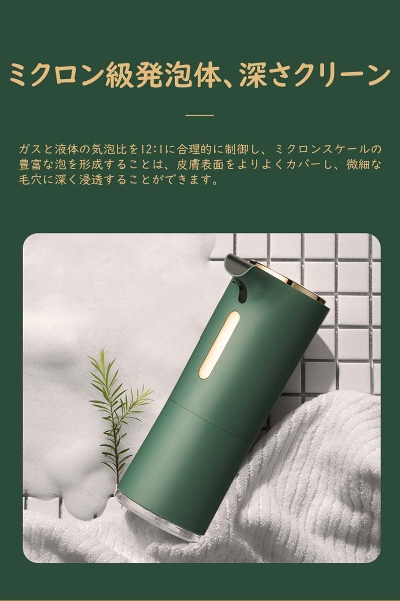 自動ソープディスペンサー 自動 泡タイプコンパクト おしゃれ 防水 電池式 充電式 \USB キッチン アルコール 除菌 静音(グリーン)272gr