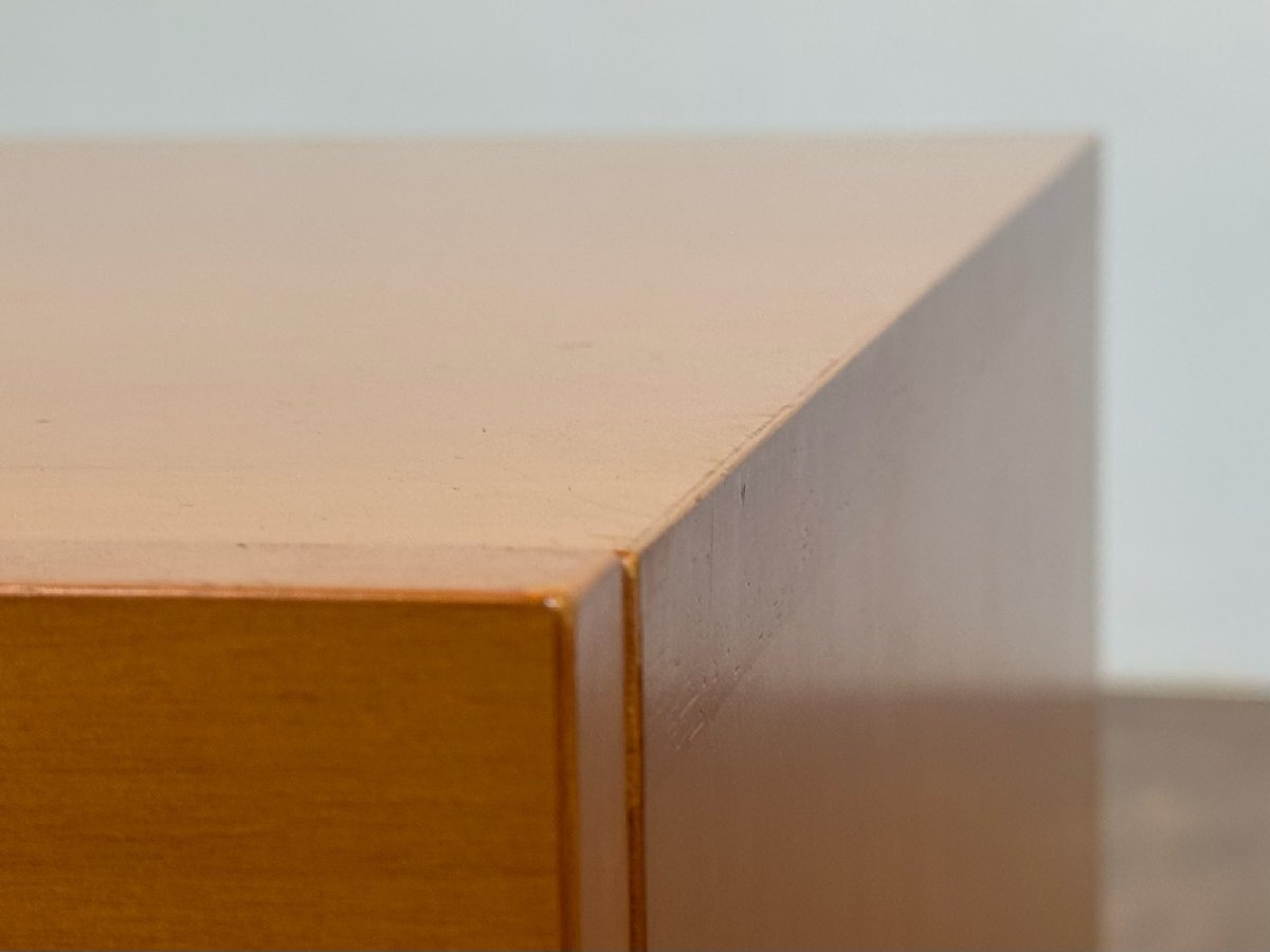 艶やかなみずみずしい質感にウォールナット材らしさを持ち合わせながら、テイストを選ばないマルチコーディネートに最適なカラーリングと質感の上品さを持ち合わせた銘材・イタリアンウォールナット材の最高部位を惜しみなく用いつつ、デザインチャームとして秀逸な小ぶりなハンドルで、木材の美しさを引き立てたクリエイション。