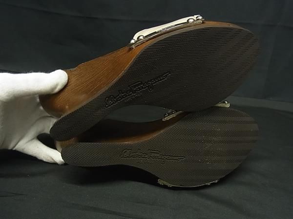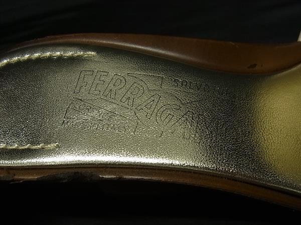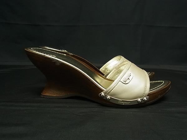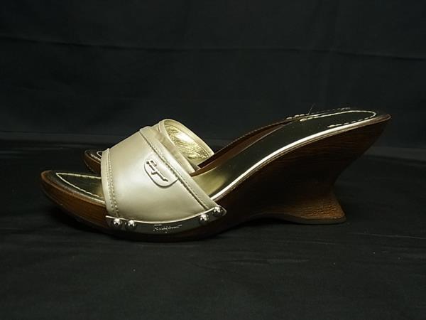 Salvatore Ferragamo フェラガモ レザー ヒール サンダル 表記サイズ6 (約23.0?) 靴 シューズ ベージュ系×ゴールド系 DJ7326