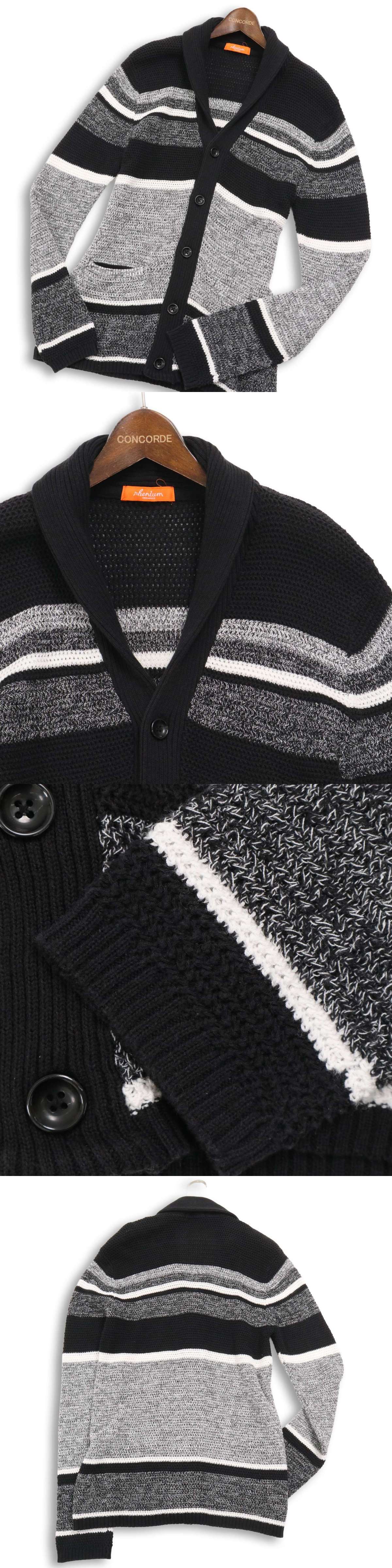 rhenium HIDEAWAYS NICOLE ハイダウェイ ニコル 秋冬 ★ ボーダー ショールカラー ニット カーディガン Sz.50 メンズ