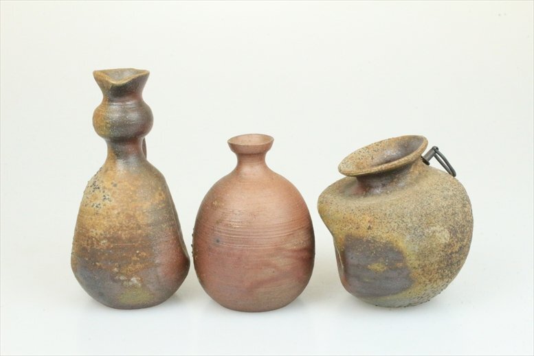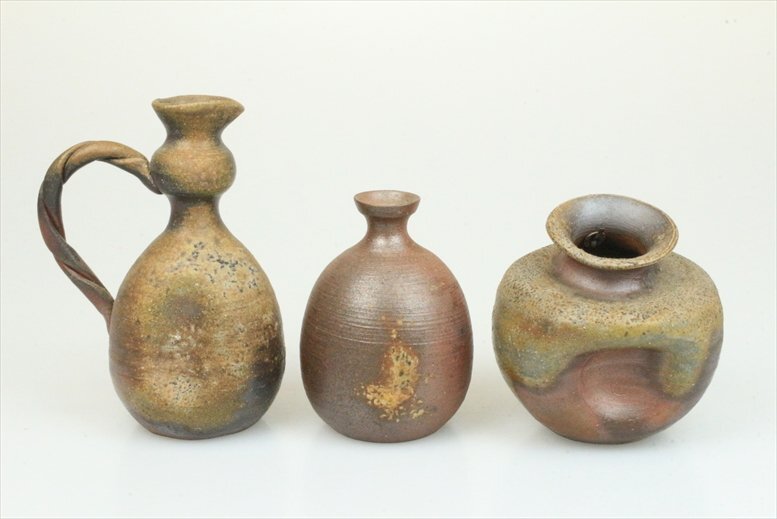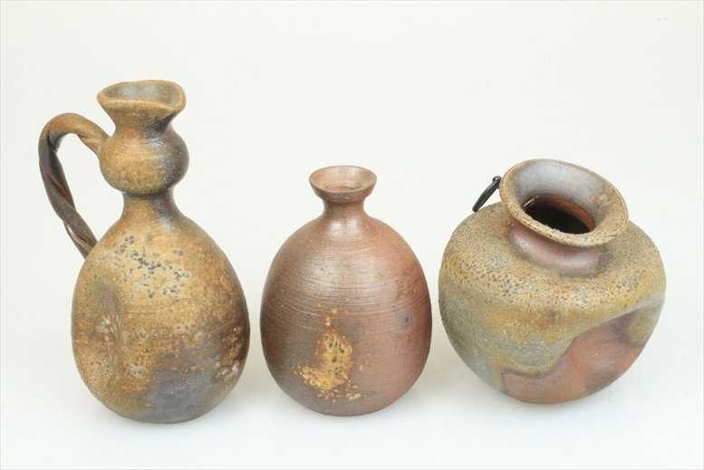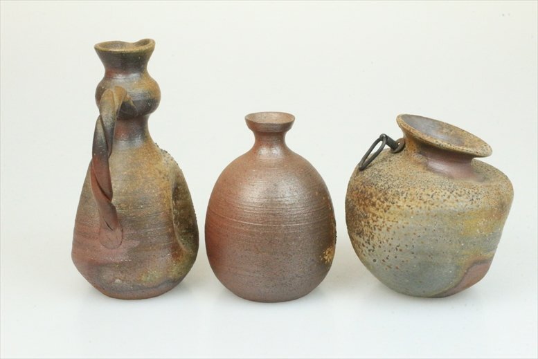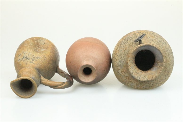 備前焼 小西陶古 まとめ 3点 水注 水差し 酒注ぎ 壁掛け 花入 花瓶 花生 徳利 酒器 花器 在銘 陶印 骨董品 古美術品 3736bzk
