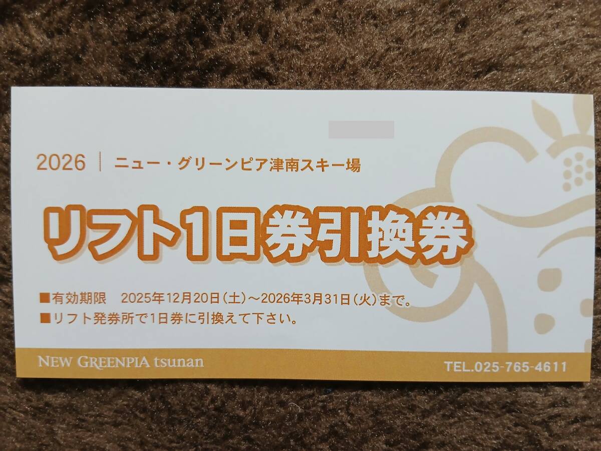 ニュー・グリンピア津南スキー場 大人一日リフト引換券 1名様分 送料無料 即決及び値下不可