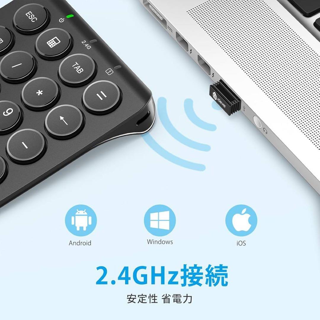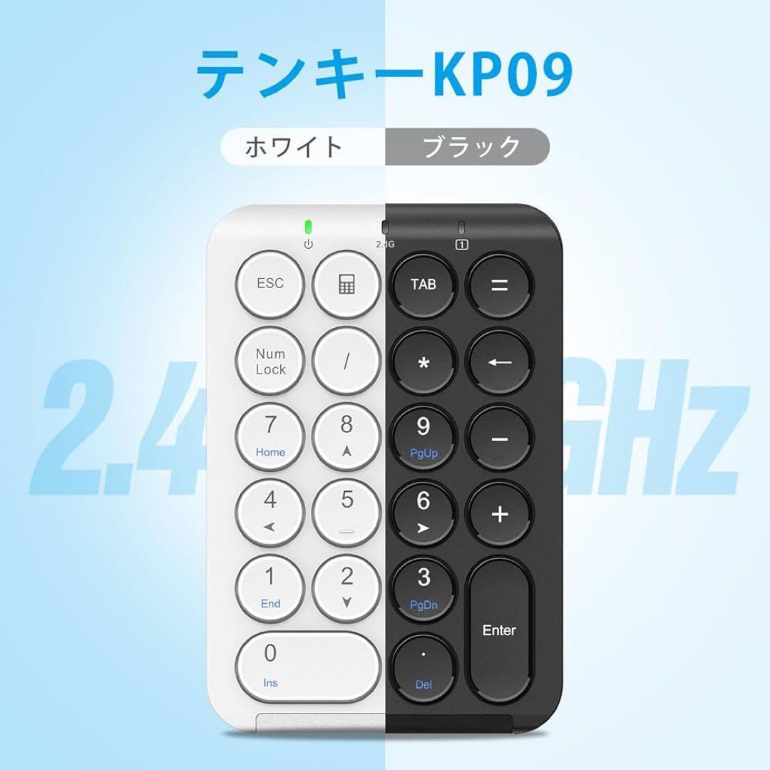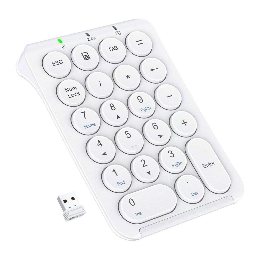 ホワイト☆iClever テンキー ワイヤレス 2.4G 数字 キーボード パンタグラフ式 Type-C充電 Tabキー付き 無線 ナンバーパッド 片手デバイス